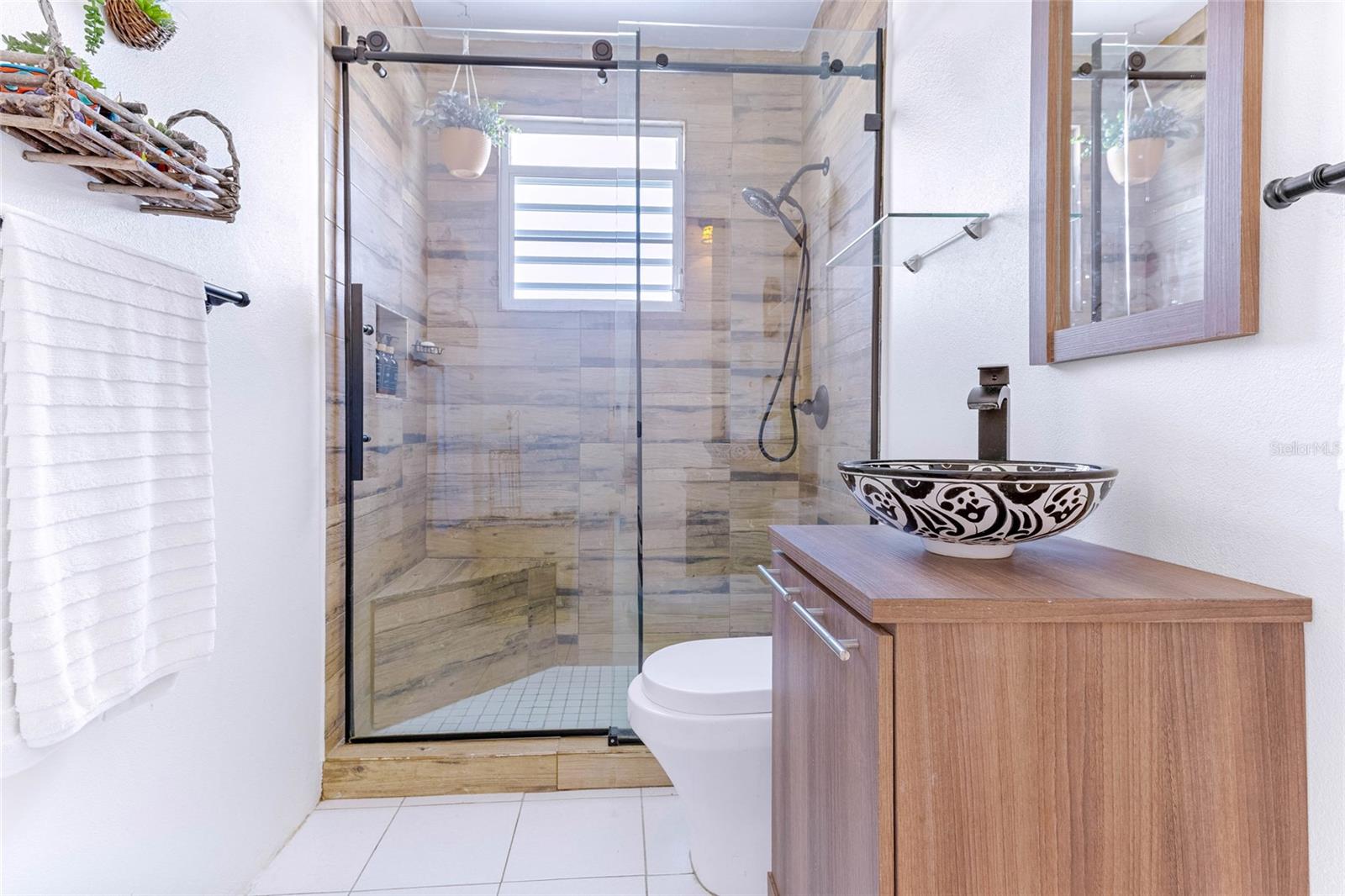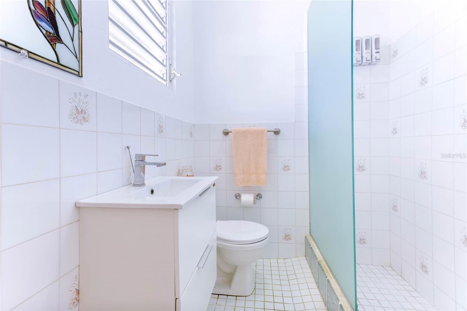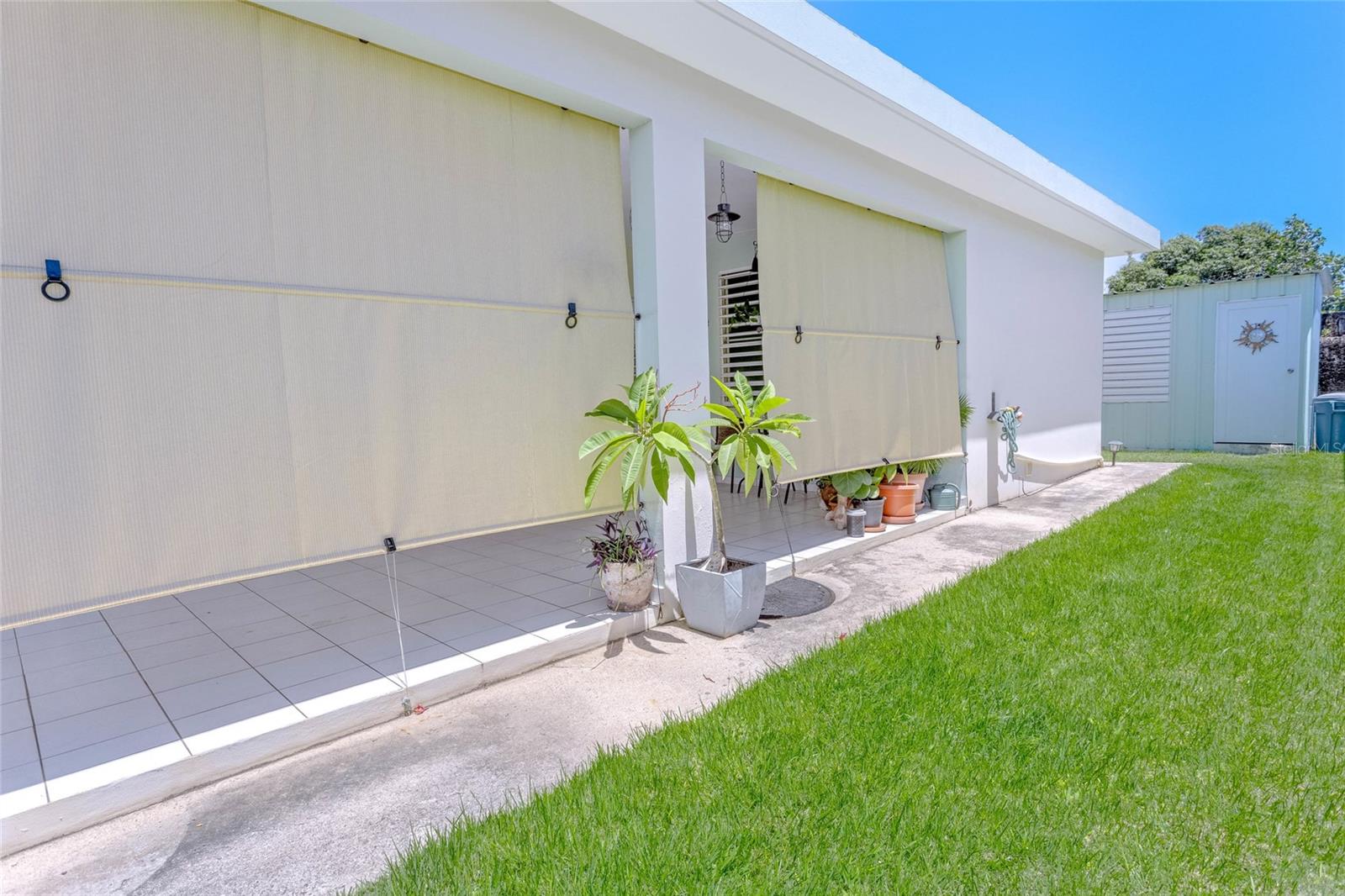 The layout offers three bedrooms and two bathrooms, with one bedroom designed as a versatile space that can function as a studio, office, or private suite, complete with its own bath and separate entrance—an ideal option for extended family or rental opportunities. The main bathroom is enhanced with a custom barn door and a modern, earthy design, while the rest of the home reflects a relaxed and stylish atmosphere. Outdoor spaces invite you to embrace a tropical lifestyle with a manicured lawn, shaded front porch, fruit trees, and an area ideal for gatherings, play, or simply relaxing. A metal storage shed provides added convenience, while the carport and landscaped frontage add to the home’s curb appeal.