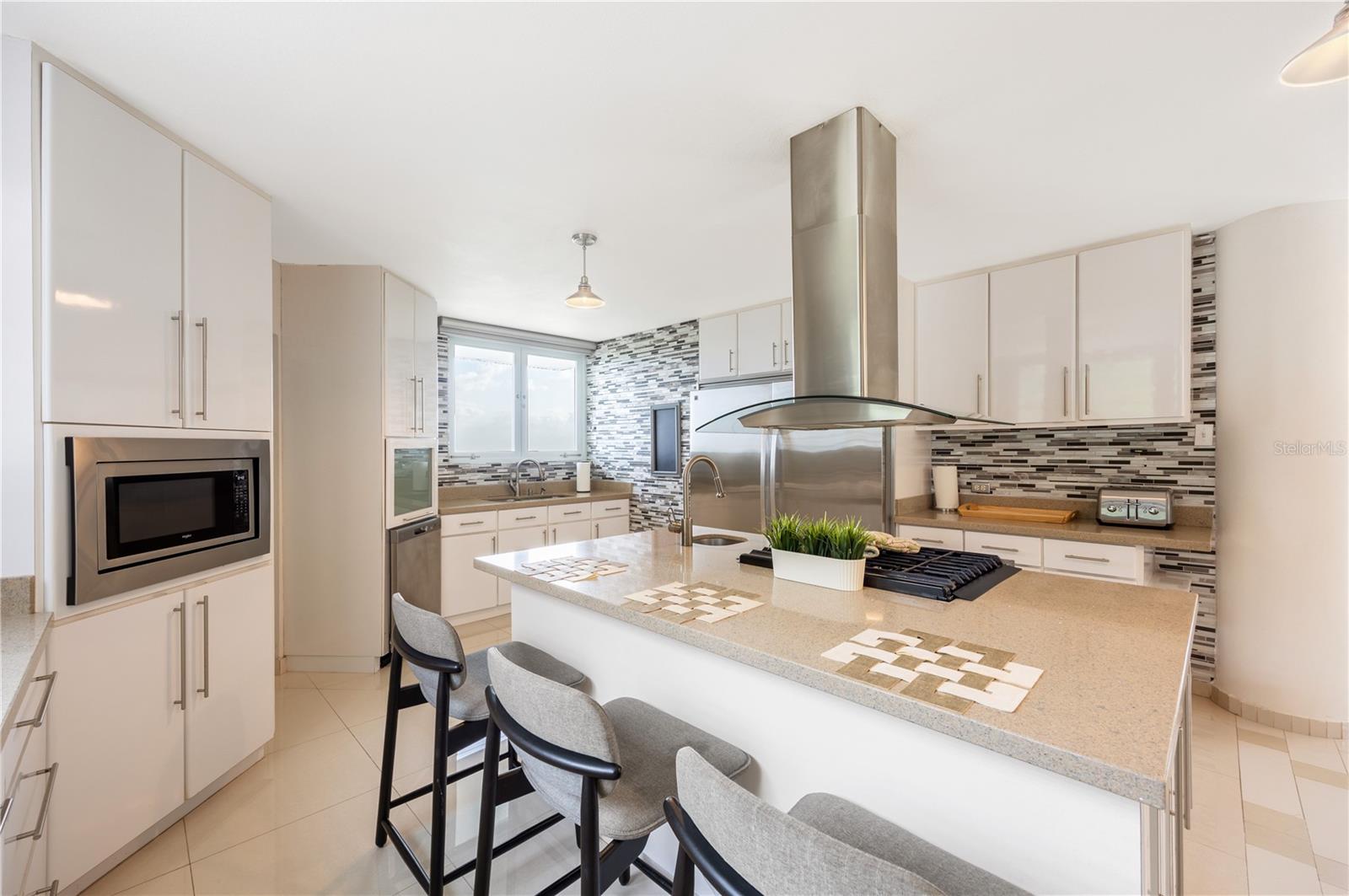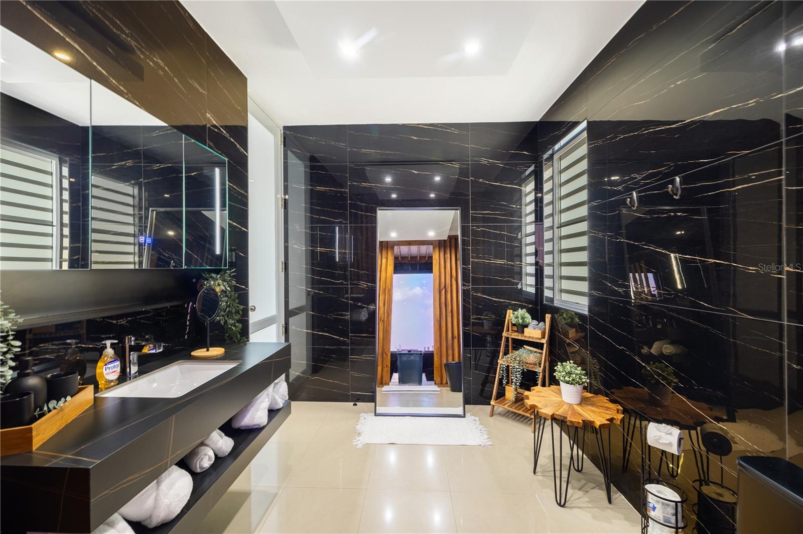 Modern amenities such as a 50kW generator, 16k Outback solar system with 60 panels and net metering, storm-rated windows, gated entry with surveillance, two laundry areas, and a chef-ready kitchen with commercial appliances ensure convenience and peace of mind.