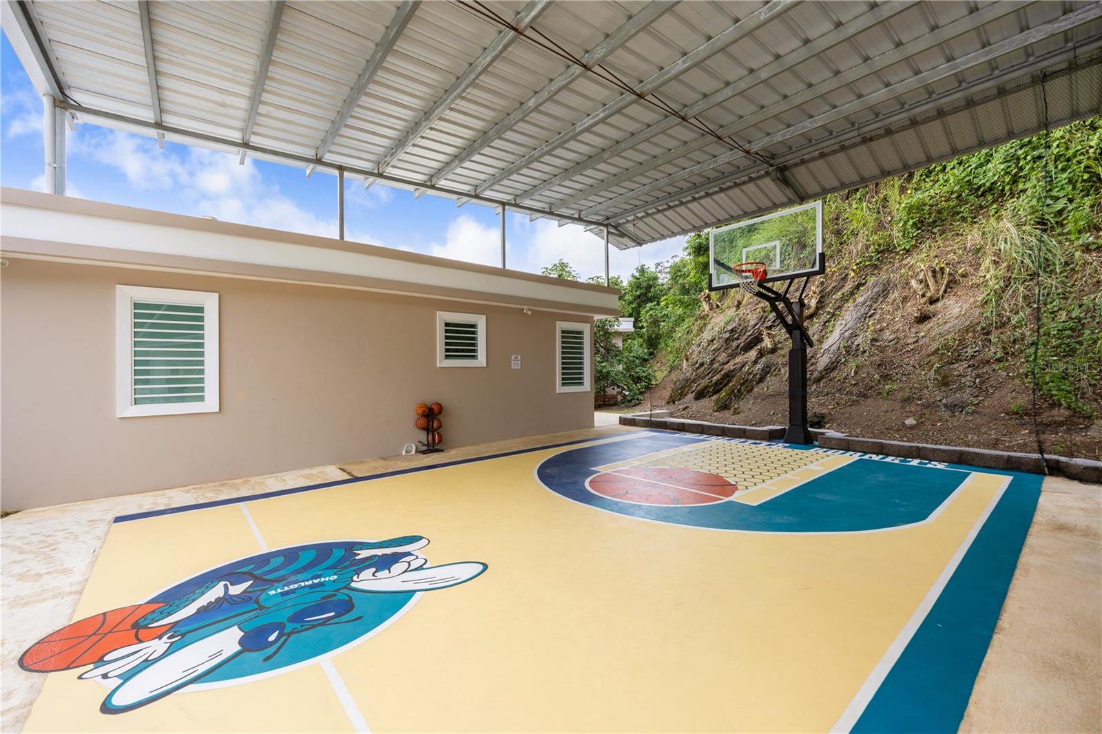 Designed for both relaxation and entertainment, the home includes an infinity pool with BBQ area, a detached studio with full bath, a custom basketball court, and a game room with pool table and PlayStation 5, comfortably accommodating up to 22 guests.