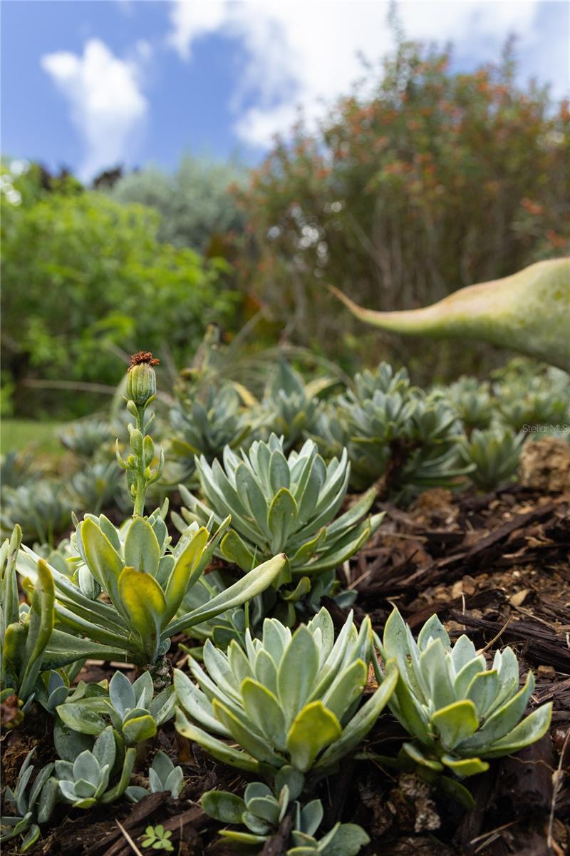 Perched at the very top of the property, the house enjoys panoramic ocean views, gracefully framed by terraced gardens and lush foliage. A dynamic blend of native and exotic plant varieties flow through the landscape, creating a living masterpiece that evolves with every step and season.