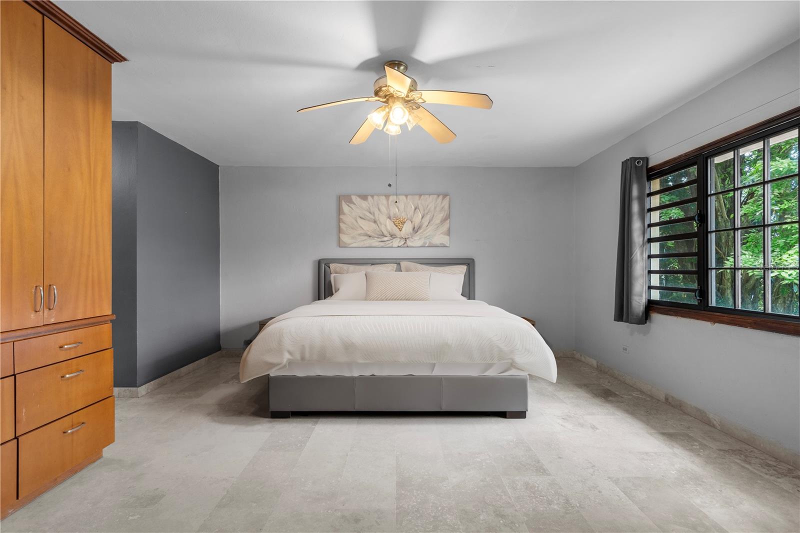 Under contract-accepting backup offers. Welcome to 40 Camino Coqui, a magnificent property nestled in the serene locale of Beverly Hills in Guaynabo. This exceptional residence offers a harmonious blend of elegance and comfort, set against the backdrop of stunning landscaped mountain views. With a generous living space of 5,348 square feet, and a 3,856 square meters lot, this home is designed to accommodate both family living and entertaining. Upon entering, you are greeted by a spacious and inviting foyer that leads to the main living areas. The property boasts three well-appointed bedrooms, a flex room, and a guest suite. The master suite features a bonus room, currently used as a gym and an office. There is a total of three full bathrooms and one half bathroom. The living room is bathed in natural light, creating a warm and welcoming atmosphere. It seamlessly connects to the dining area, perfect for hosting intimate dinners or larger gatherings. The kitchen is a U-shaped chef's delight, equipped with modern appliances and abundant storage. Step outside to discover a lush garden that surrounds the property, offering a serene escape from the hustle and bustle of daily life. The meticulously landscaped grounds are complemented by a sparkling pool, ideal for relaxation and leisure. This tropical retreat provides a unique opportunity to enjoy the beauty of nature in the privacy of your own home. 40 Camino Coqui is more than just a residence; it is a lifestyle. Fully equipped with 20 kW diesel backup power generator, two 500 gal water cisterns, one 200 gal diesel tank, and one 25 gal water filter. The property is situated in a desirable location, offering easy access to top schools, main roads and entertainment. Beverly Hills is gated community of custom-built homes, with 24-hour security. For more information or to schedule a private viewing, please contact us. Experience the charm and elegance of this remarkable property and envision the possibilities it holds for your future.