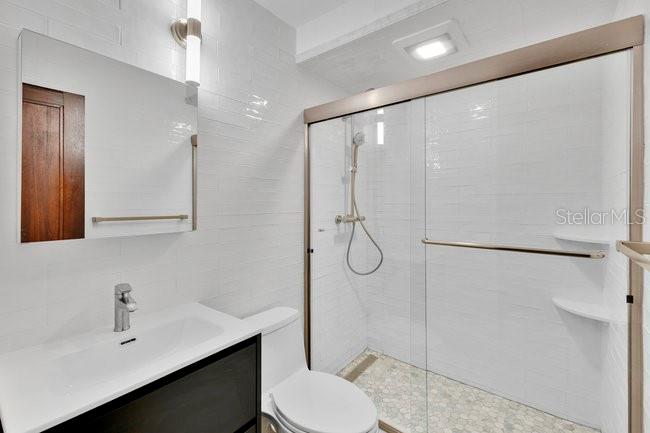 Both bathrooms have been completely remodeled, featuring new tile throughout, custom sliding shower doors, high-quality shower valves with handheld sprayers, and custom vanities. Each bathroom is also vented to the exterior for enhanced airflow as is the laundry room. Custom hardwood doors with Emtek lever passage sets and stainless steel hinges provide a luxurious touch, while the front door is equipped with a digital keyed entry for added security and convenience.