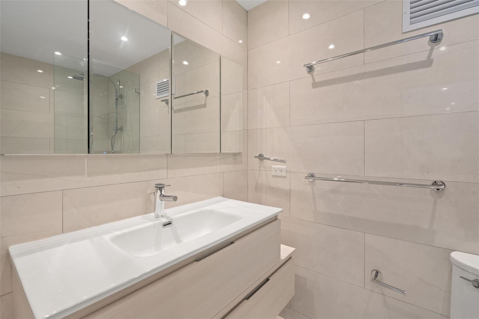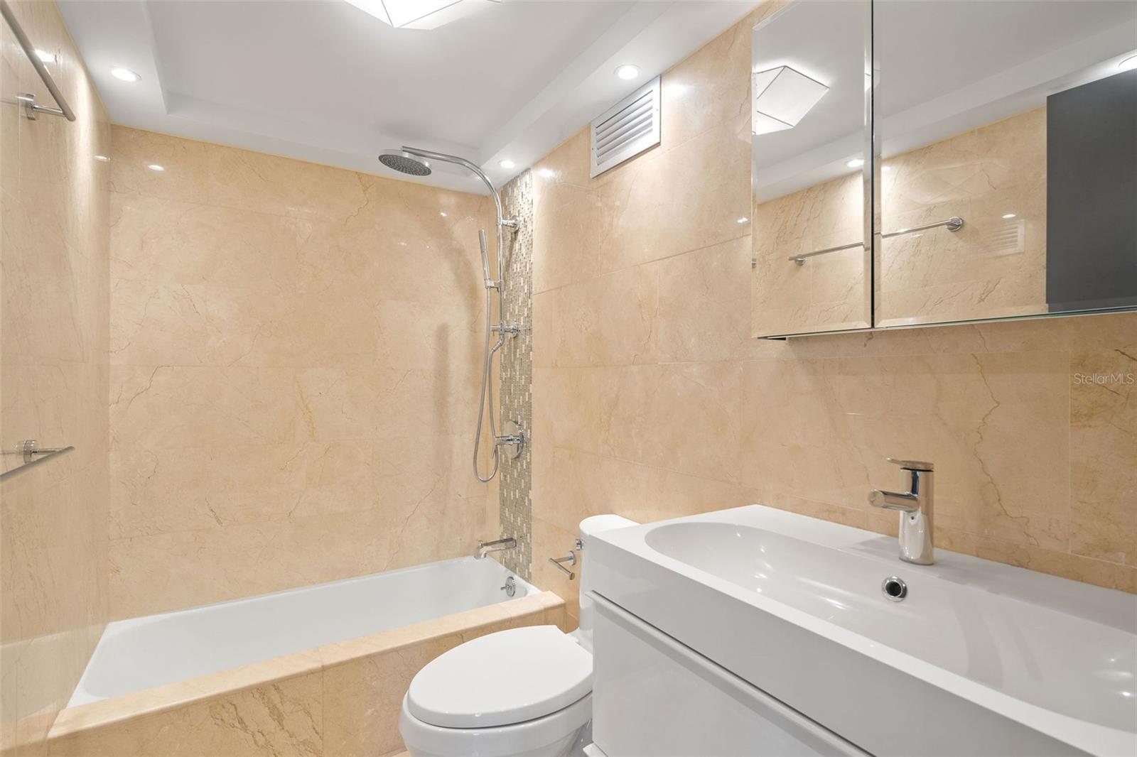 The apartment features a modern open kitchen layout, perfect for entertaining, with high-end appliances and sleek finishes. The elegant Kohler bathrooms are designed for your comfort and style, while zoned air conditioning ensures perfect climate control throughout the apartment. Every room is outfitted with complete window treatments for privacy and style, and recessed lighting with dimmers allows you to set the perfect ambiance for any occasion.