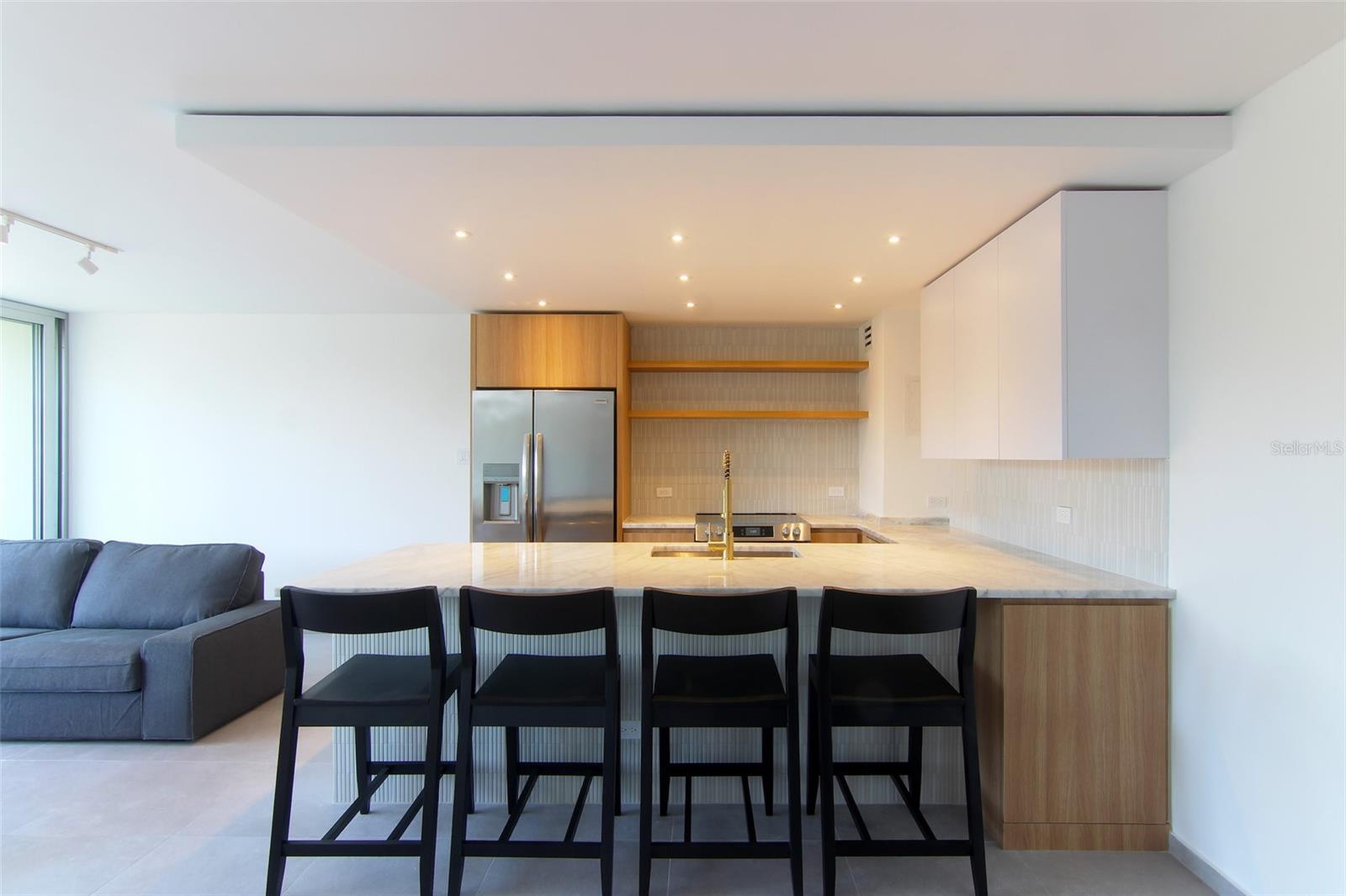 Discover refined coastal living in this newly remodeled two-bedroom, two-bathroom apartment, where Scandinavian architecture meets the Caribbean. Thoughtfully designed with granite bathroom vanities, an oversized dolomite kitchen countertop, rain showers, anti-fog mirrors, warm dimmable lighting, and safety windows, this home blends elegance with comfort.