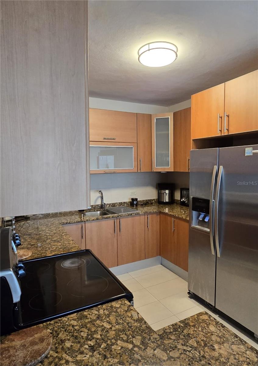 The modern kitchen is equipped with European cabinets, granite countertops, and stainless-steel appliances, enhanced with elegant finishes. The apartment is sold furnished and fully equipped, including 4 Fujitsu inverter a/c units and a combo washer/dryer.