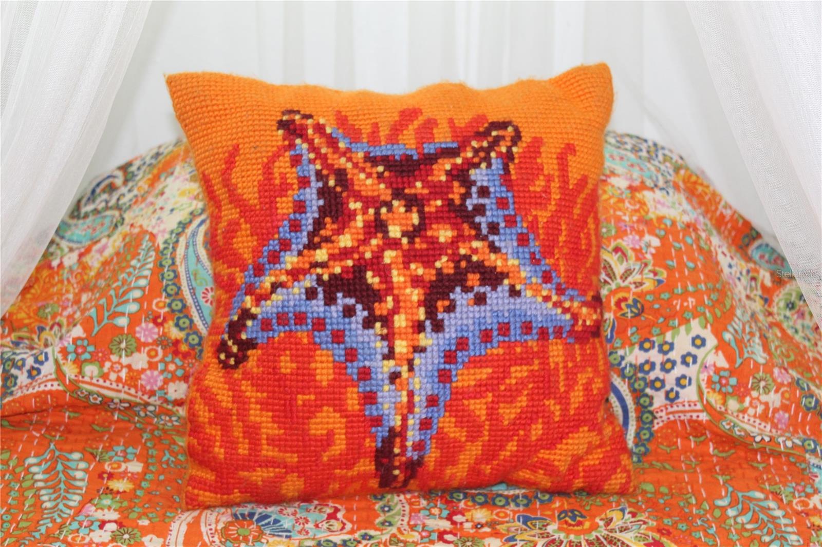 The primary bedroom is complete with a king-size bed, ocean views, a desk and closet space. Two guest bedrooms each with twin beds and are located on the back of the home with comfort and garden views.