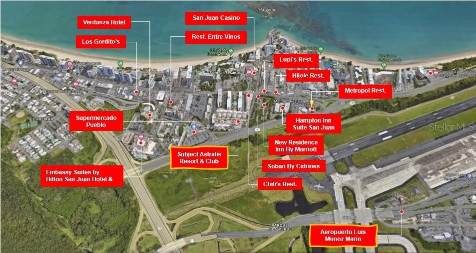 Luis Munoz Marin International Airport, Airport Rd, Carolina, Head east on Airport Rd Take Marginal Aeropuerto to Airport Rd, Get on Av. los Gobernadores/PR-187 Follow Av. los Gobernadores and Av. Isla Verde/PR-37 to Calle Diaz Wy Turn left onto Calle Diaz Wy