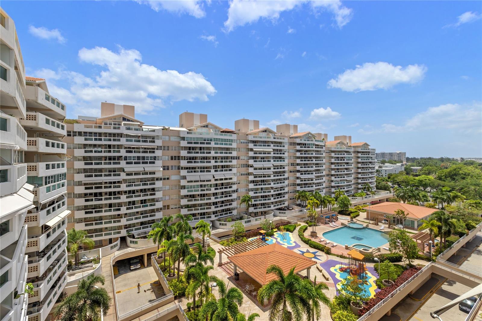 The complex offers a swimming pool, playgrounds, gazebo, event room, gym with sauna and steam room, 35 visitor parking spaces, and 12 designated handicap spaces. Prime location, close to hotels, supermarkets, restaurants, and casinos. Just a 3-minute drive to Isla Verde Beach and its water activities.