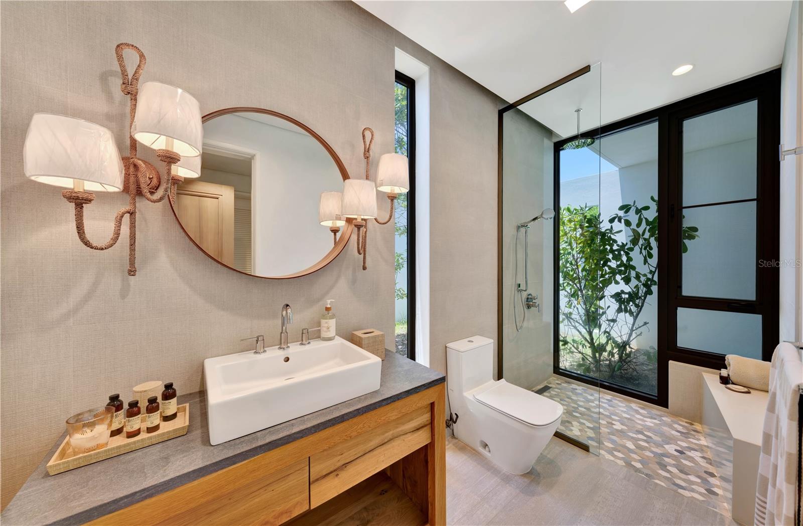 ***UNDER CONTRACT*** No expense spared on this true to form Caribbean contemporary new construction, sitting blissfully at the eastern entrance to the rainforest and within the gates of Bahia Beach Resort. Completed in 2024, 23 Las Estancias stands a testament in true adoration to architectural intention and sophisticated purposeful interior design. Sitting on just over 1/2 acre, each curated detail resonates throughout this 3 bedroom, 3 full bath and 2 partial bathroom single level estate. 20+ Ft entry ceilings pull all of the natural light from the floor to ceiling glass doors, with broad facing western exposure to the lake, mountains and lush tropical backdrop that only the El Yunque rainforest can afford. Brushed blond wood palettes delicately accent the pinnacle of each room's ceilings, pulling in natural textures to the all concrete structure. Limestone floors add a cool tonality to the juxtaposition of ultra green foliage enveloping the home's elevated exterior facade landscaping. Cascading honed marble countertops highlight this double sized gourmet kitchen, featuring a gratuitous 19x19 footprint, and cornered by 10+ ft glass doors that open fully to the property’s magical oasis. Privacy and purpose reign here, where your outdoor summer kitchen equipped with full gas range, sink and bar moves fluidity towards your zero edge swimming pool, which is adjacent to your outdoor shower and bath, dining, sunning areas and hidden entertaining spaces. Guest suites, each highlighting the exotic nature of living within the resort, feature walk-in closets, ensuite baths and full length picture windows encasing the spaces with fresh sunkissed natural light. The primary wing serves as an homage to refined peace. Double entry doors swing inwards towards the 4 post california king bed, masterfully angled towards the estate’s western outdoor living, where hints of running water from the lake abutting the property’s line, and coconut bearing palms sway off in the distance, to this coast's constant melodic breezes. A basin tub swathed in the greenery exposed by the large bay windows, and indoor/outdoor shower textured in raw stone elements, and an 11' 11” X 13' 11” temperature controlled boudoir and closet round out the home's impeccable design. Warm neutrals kiss every element of design here, where Lutron lighting and shades throughout, a fully off grid solar installation on roof and numerous other refined details, allow the owner the ease of purposeful living. 23 Las Estancias serves as a culmination of vision and passion elegantly aligned in both presence and form. The only of its kind, a true 1 of 1.