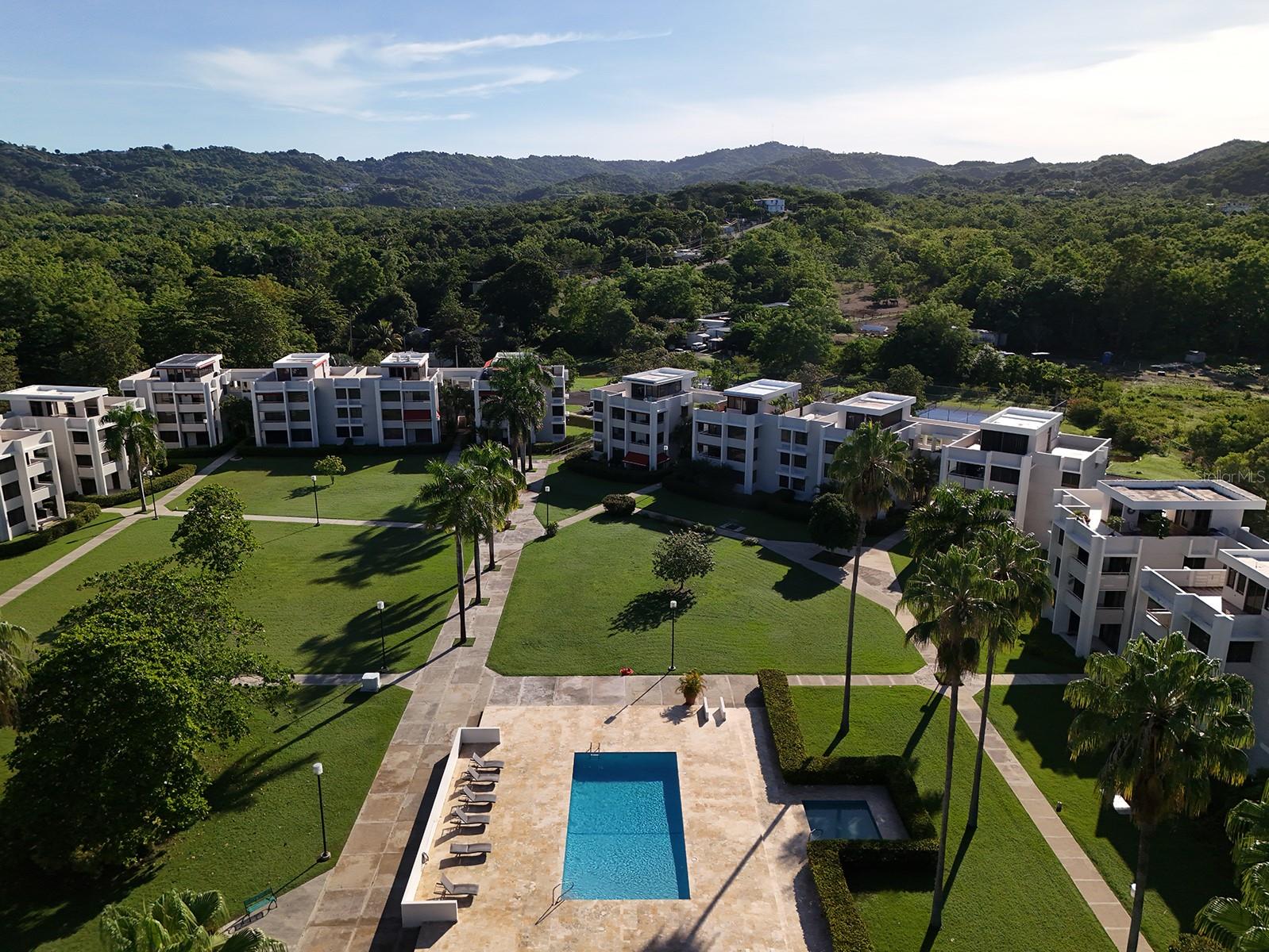 From the Rincón Town Plaza, head west on PR-115, Continue passing local shops and restaurants and take a right to corsega. take the first left and continue until you reach the entrance to Los Almendros Condominium on your left. Enter through the gated community; the buildings are nestled among lush greenery with the pool area visible ahead. The drive takes approximately five to seven minutes from the town plaza, making Los Almendros perfectly situated between the heart of town and the tranquility of the coast