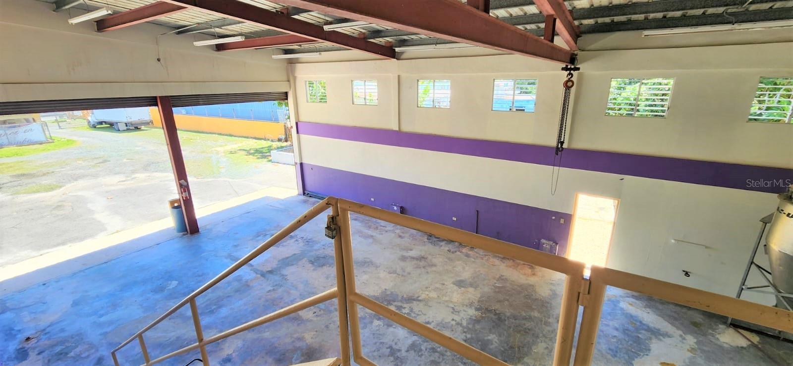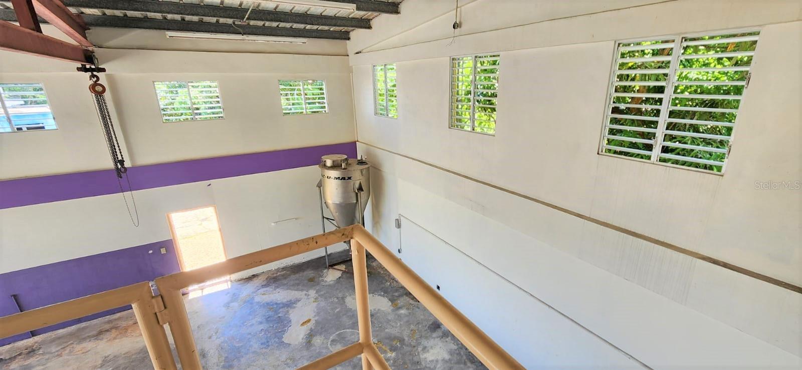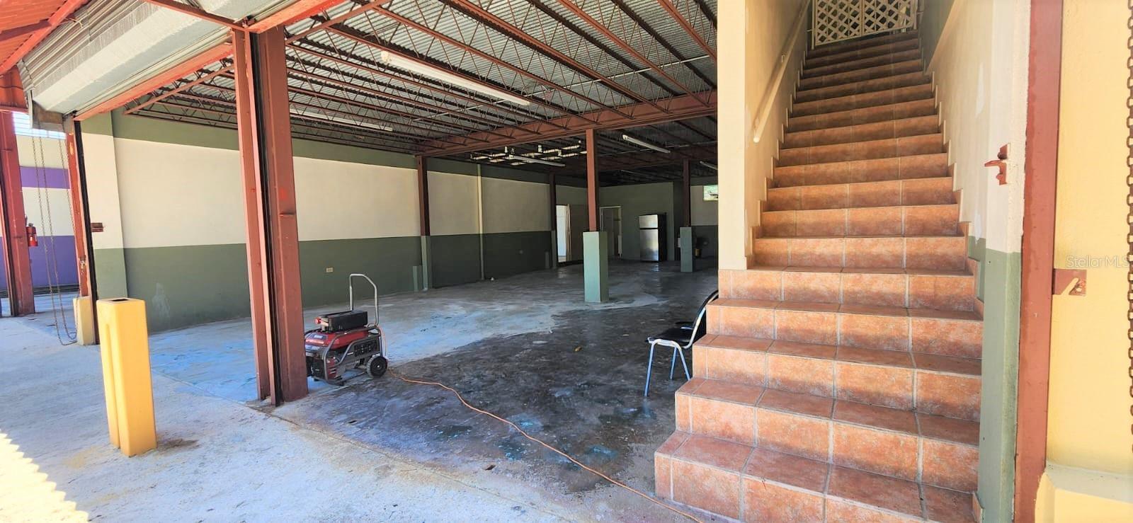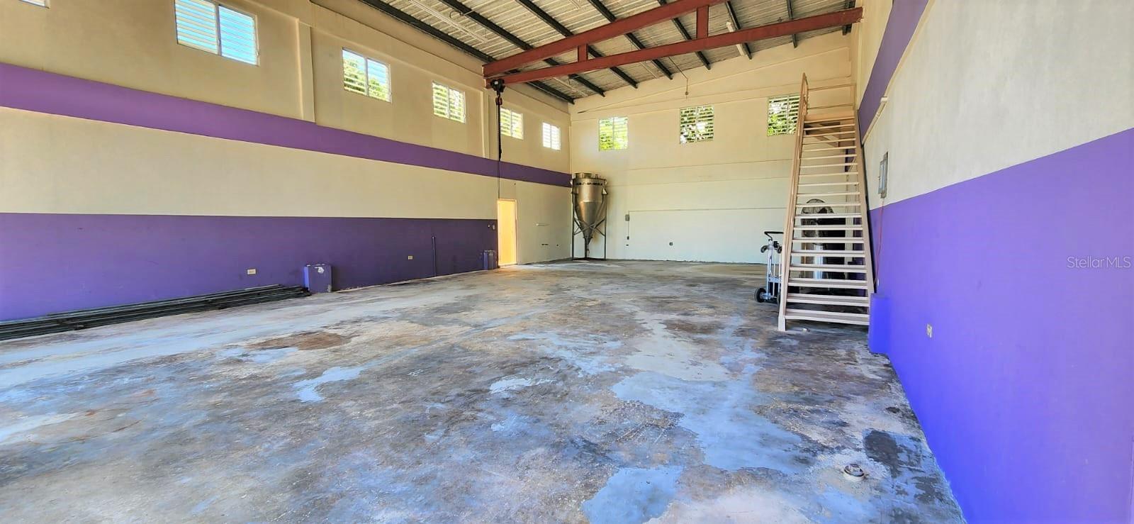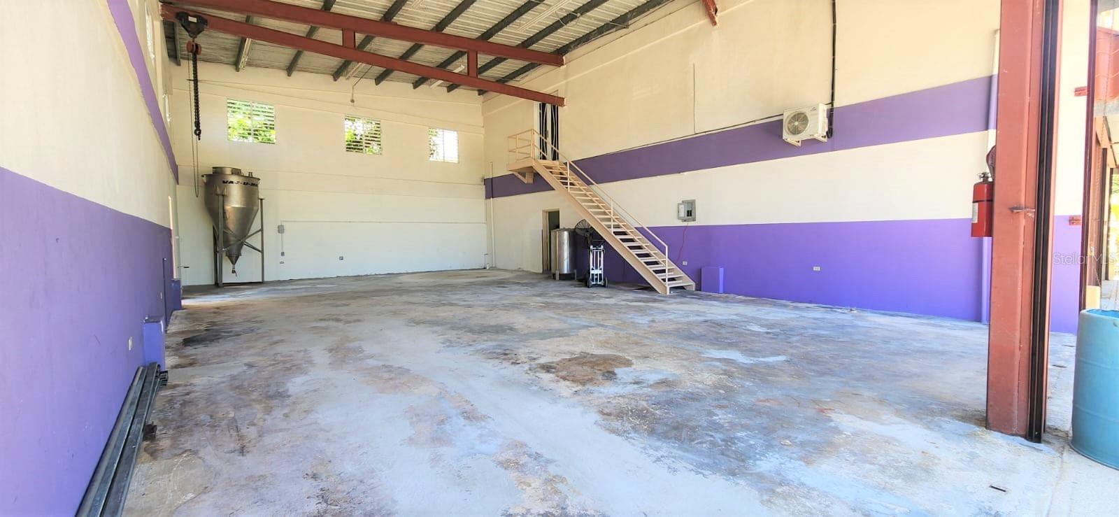 The first floor consists of a spacious, open area with a high ceiling previously used for industrial work; the other half features a spacious open area and an accessible full bathroom. Outside, adjacent to the main building, there is another bathroom and a storage room.