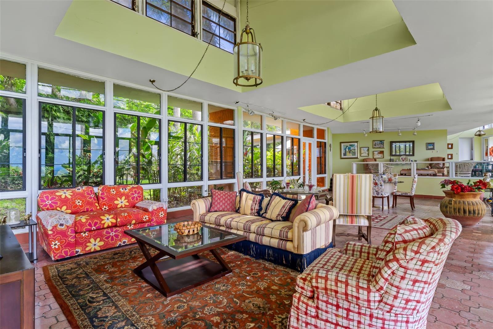 Located in an exclusive gated community just 7 minutes from Highway #3, this beautiful property sits on 5 acres of land with flat green areas, tropical trees, and lush landscaping. A private gated entrance and driveway provide both privacy and easy access. The residence includes 5 bedrooms and 3 bathrooms, an expansive living room with scenic views, a spacious kitchen, panoramic balconies, a swimming pool, a covered garage, and a power generator. Perfect as a primary residence, retirement retreat, or investment property, it also offers excellent potential for short-term rentals. Surrounded by fresh air and natural beauty, the home boasts breathtaking views of El Yunque National Forest and the coastline.