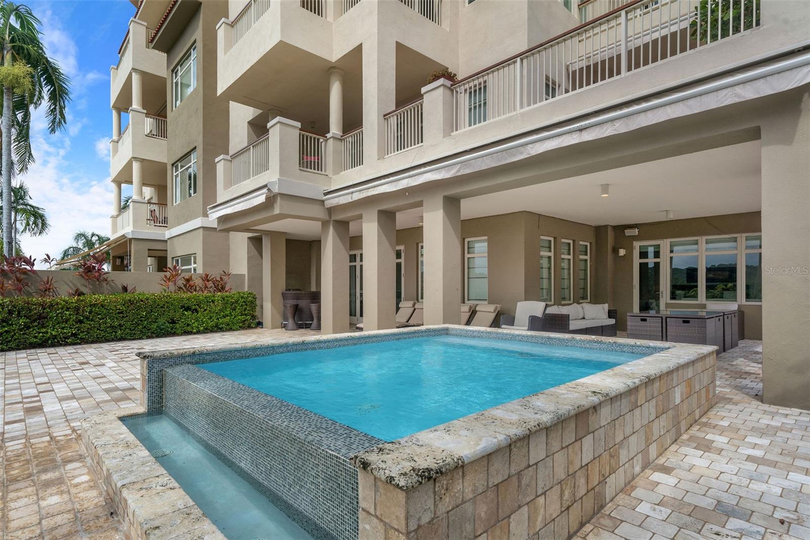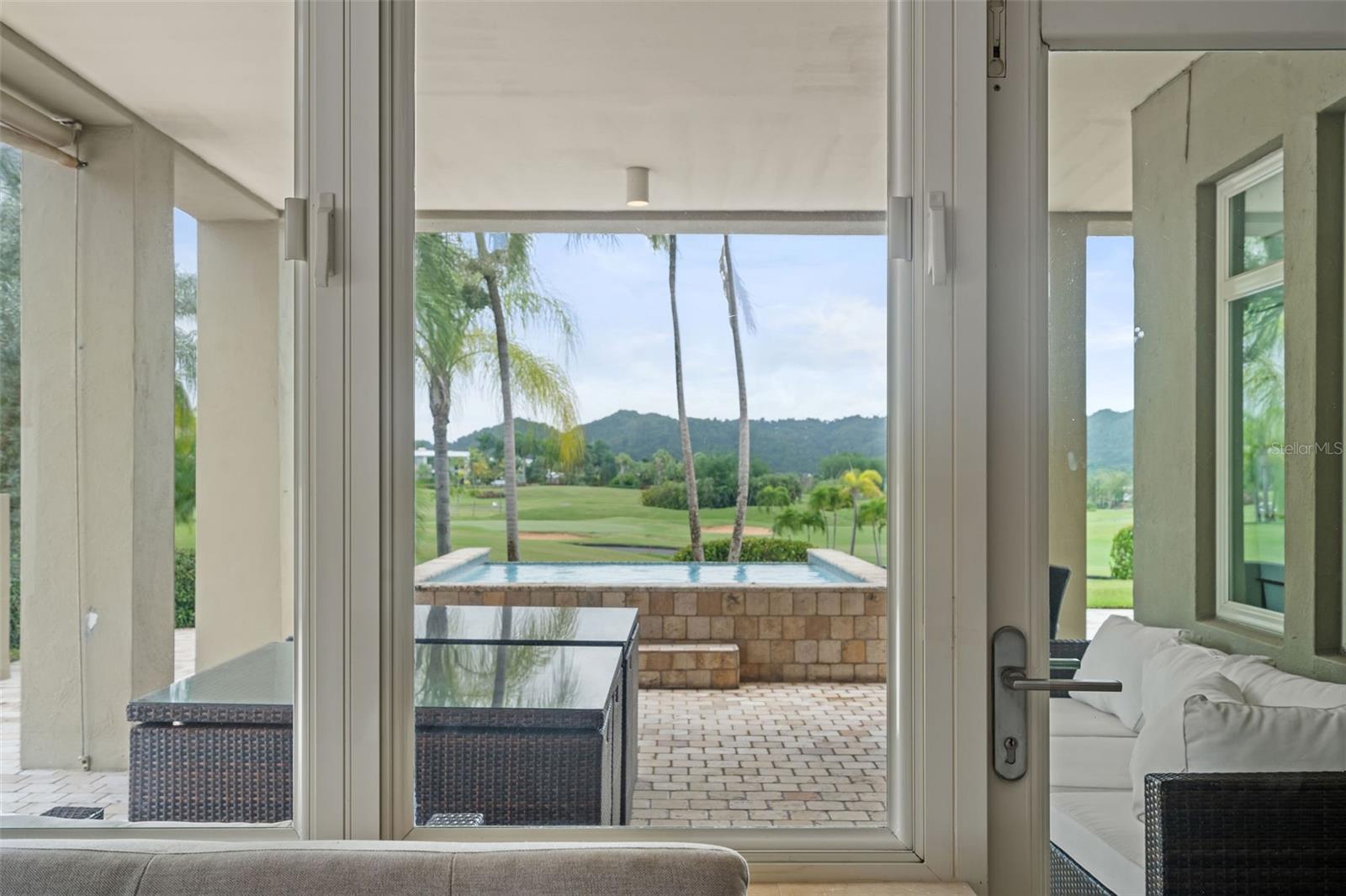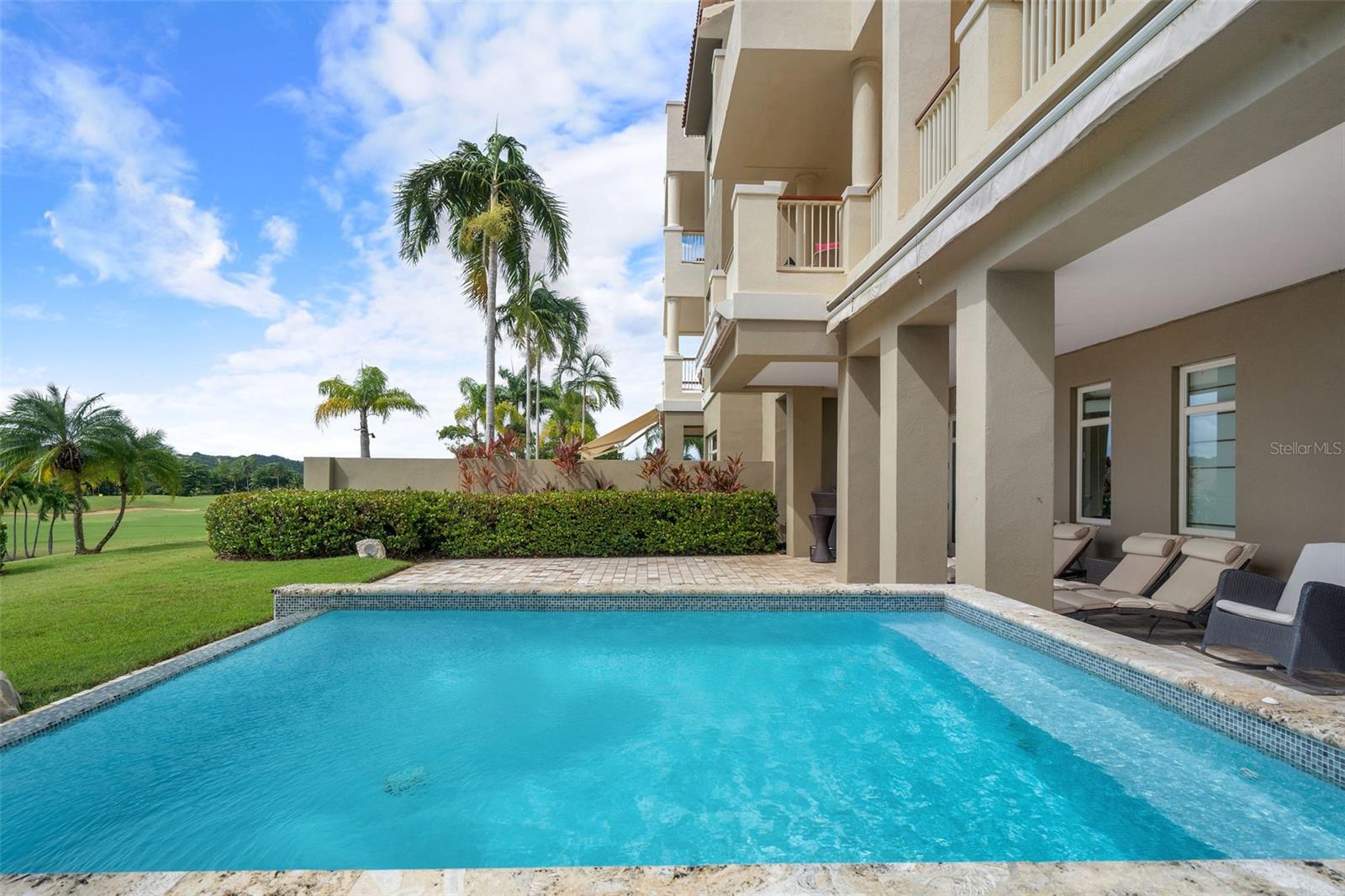 A highlight of the residence is its expansive 2,700-square-foot wraparound terrace, complete with a private dipping pool and sweeping views of the TPC Sugar Cane Golf Course—an ideal setting for outdoor living and entertaining.