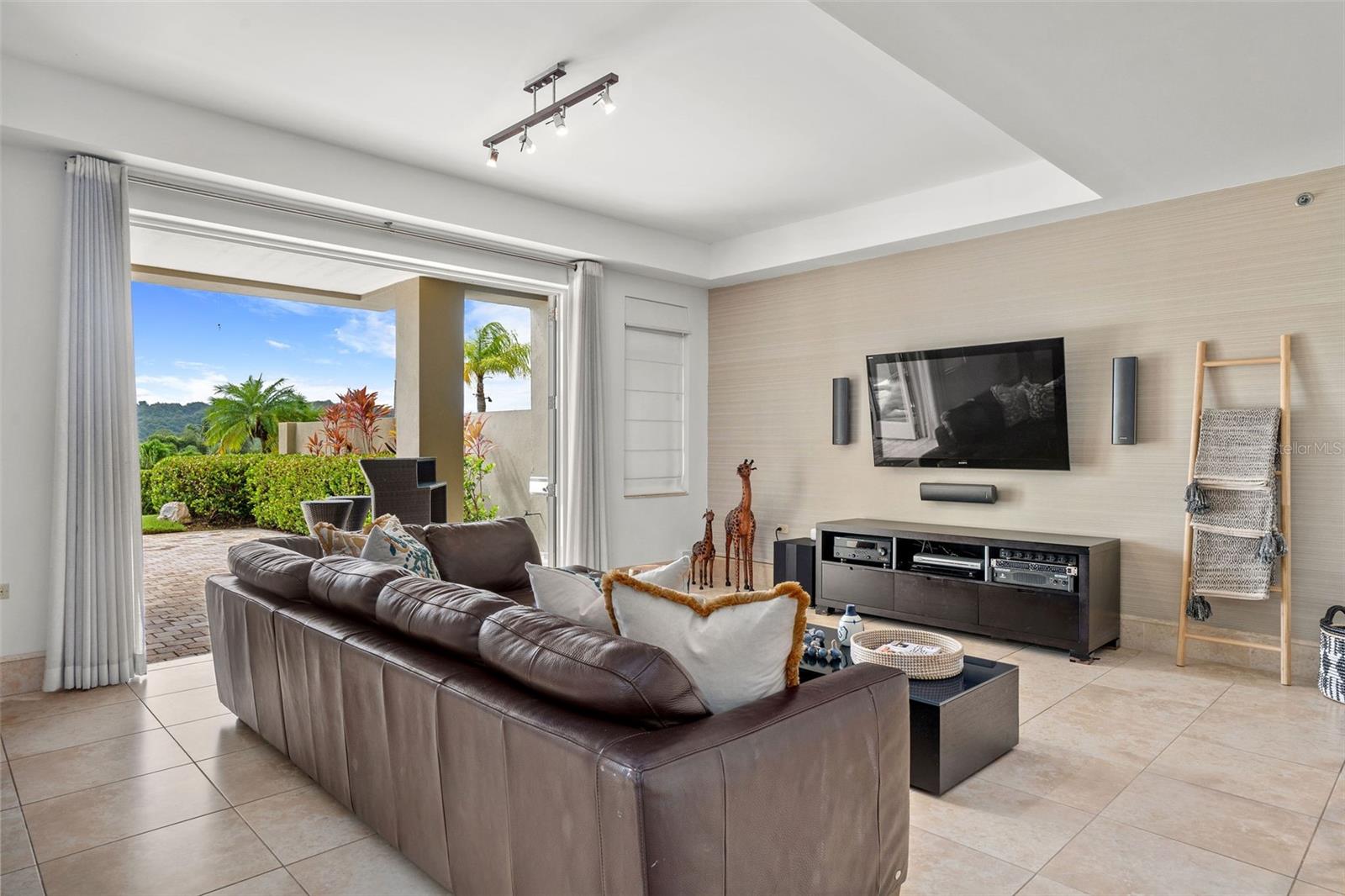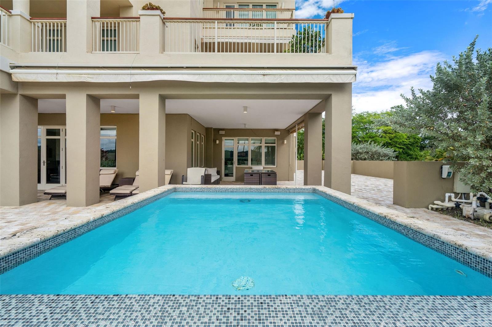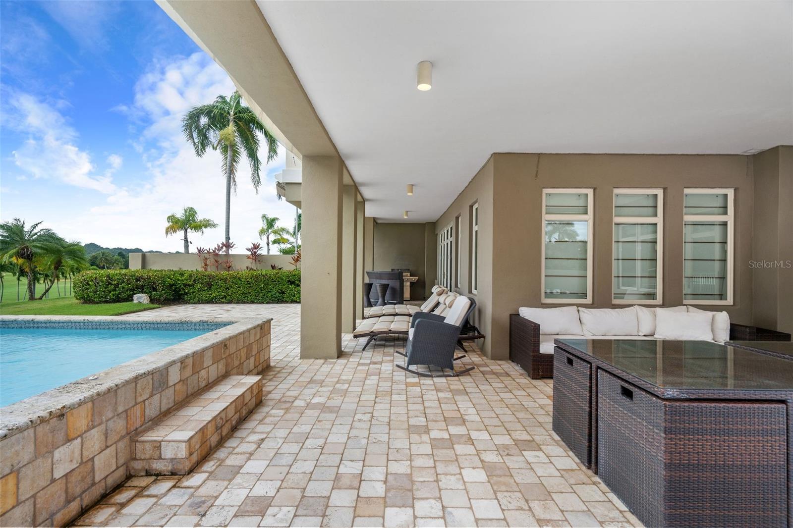 A highlight of the residence is its expansive 2,700-square-foot wraparound terrace, complete with a private dipping pool and sweeping views of the TPC Sugar Cane Golf Course—an ideal setting for outdoor living and entertaining.