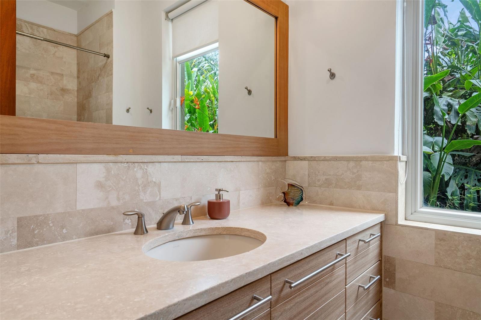 The property features three spacious bedroom suites, each with its own bathroom, along with a private entry foyer, modern kitchen, laundry, and garage for two vehicles, plus exterior and golf cart parking. Furnished and fully equipped, it offers move-in readiness with thoughtful details throughout.