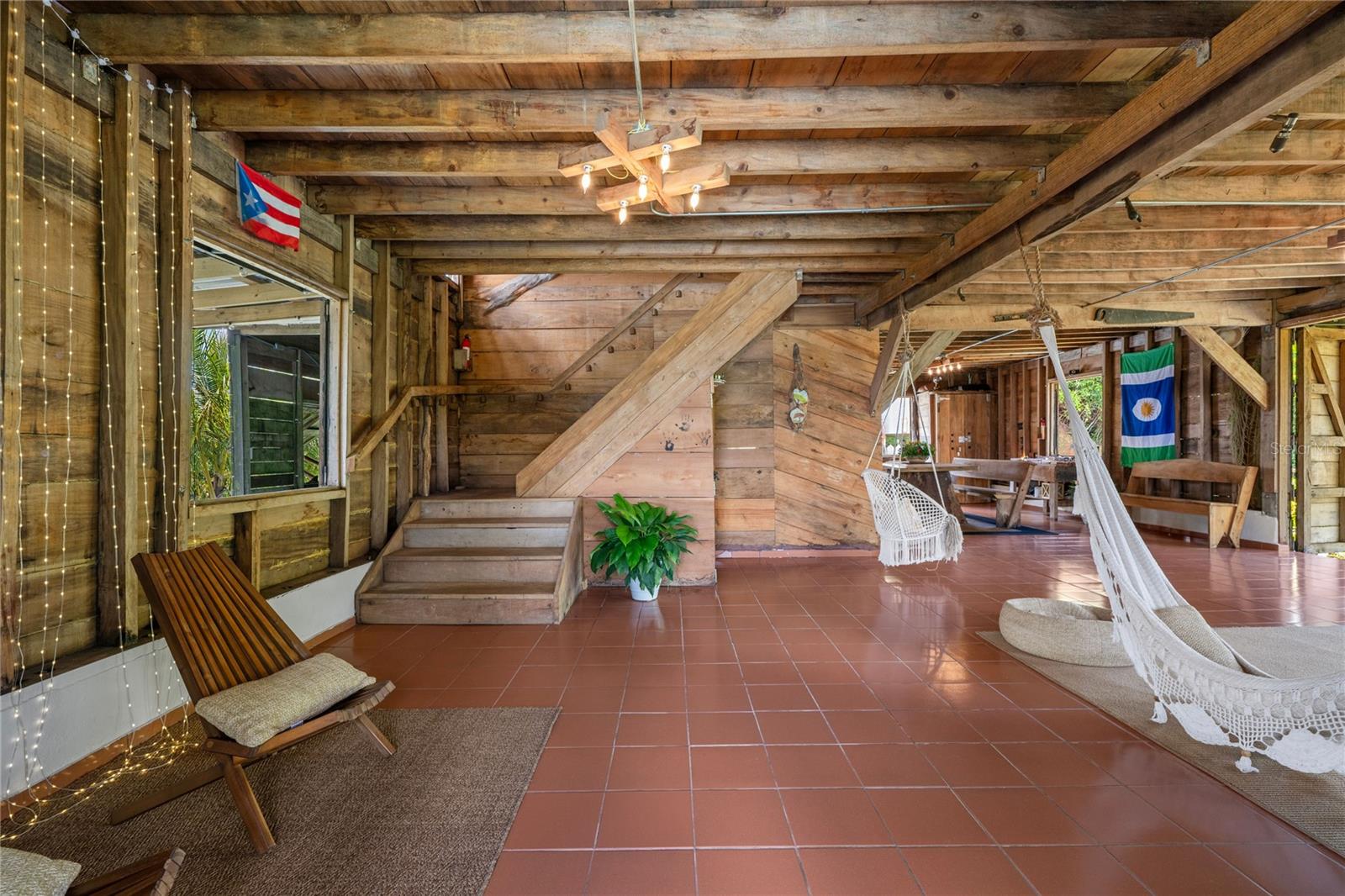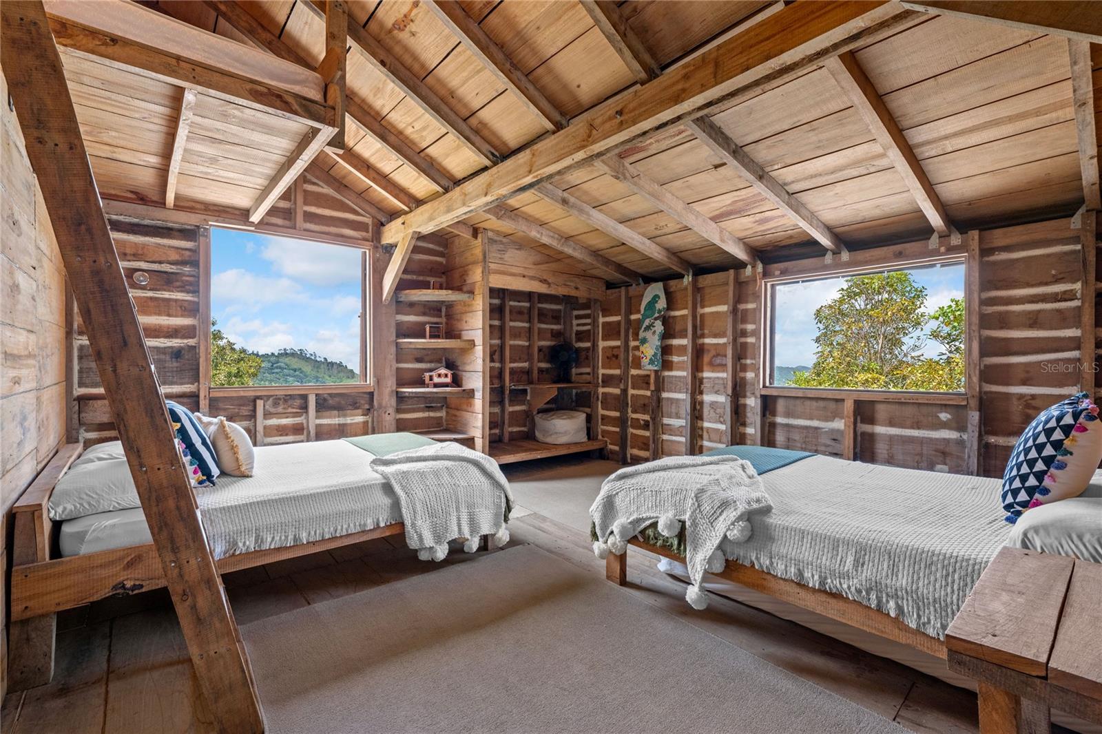The main residence is a handcrafted, two-story wooden cabin built in 2014 using native Capa Prieto hardwood, known for its durability and resistance to tropical conditions. The first level includes an open-concept kitchen, living, and dining area with surrounding windows that provides panoramic views of the mountains. The upper floor contains the sleeping quarters, designed to provide a peaceful and natural atmosphere.