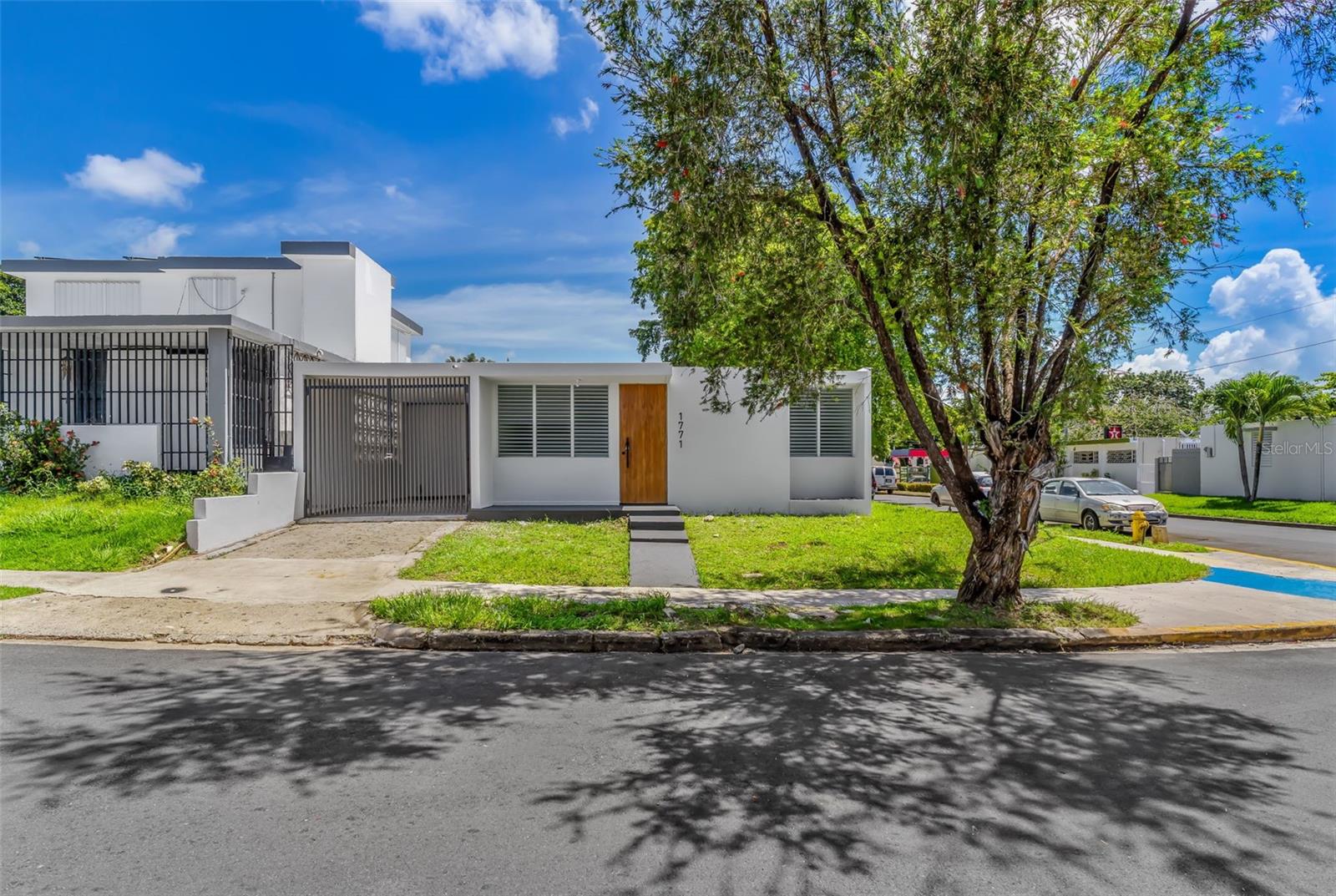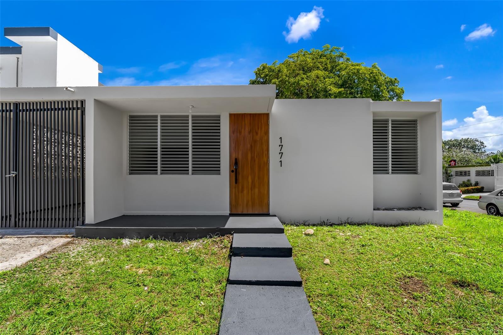 Corner property located at Calle Leo #1771, Urb. Venus Gardens, San Juan. Approx. 400m² lot and one-level residence with approx. 1,450 sq.ft. of construction. The property features 4 bedrooms, 2 bathrooms, living room, dining room, renovated kitchen with PVC cabinets, laundry area, and a single carport with potential to add additional parking space. Interior fully remodeled with new floors, new doors and windows, and mirrored closet doors. Located in a quiet residential neighborhood with easy access to Cupey, hospitals, schools, restaurants, and main roads. Not located in a gated community.