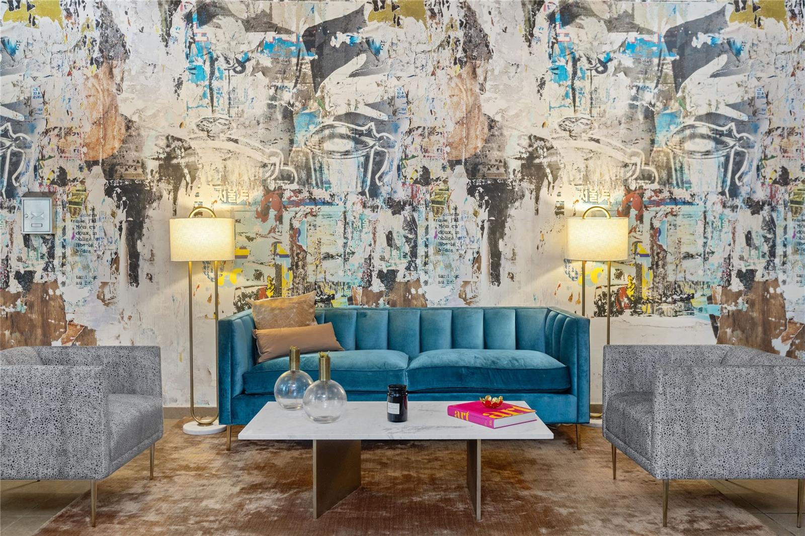 Centered around a tree-lined plaza, this community blends nature and city life seamlessly. This one-bedroom apartment is bright and airy, with floor-to-ceiling glass walls that flood the space with natural light. A neutral palette of whites, creams, blues and greys creates a calm retreat in the heart of the city.