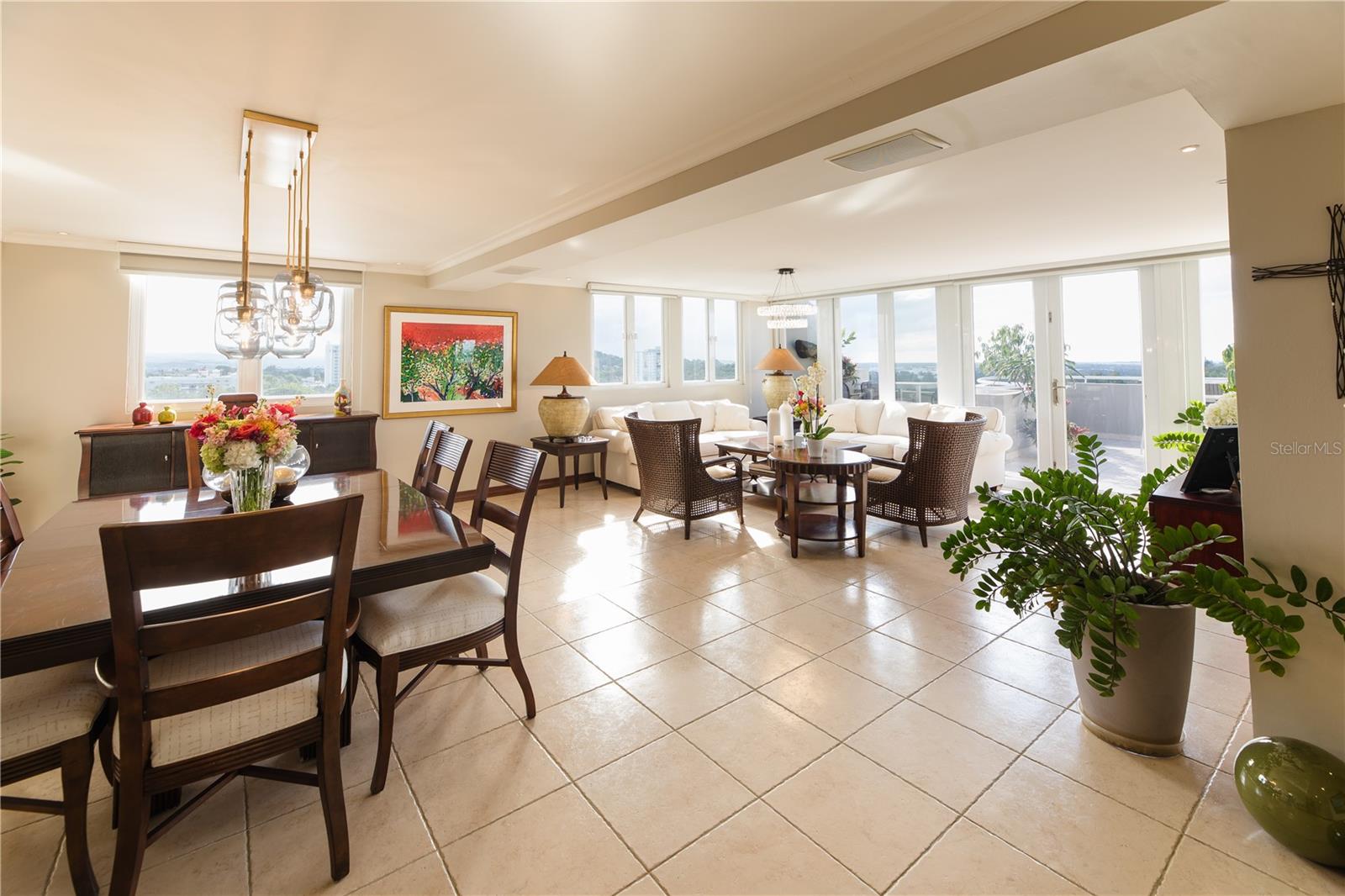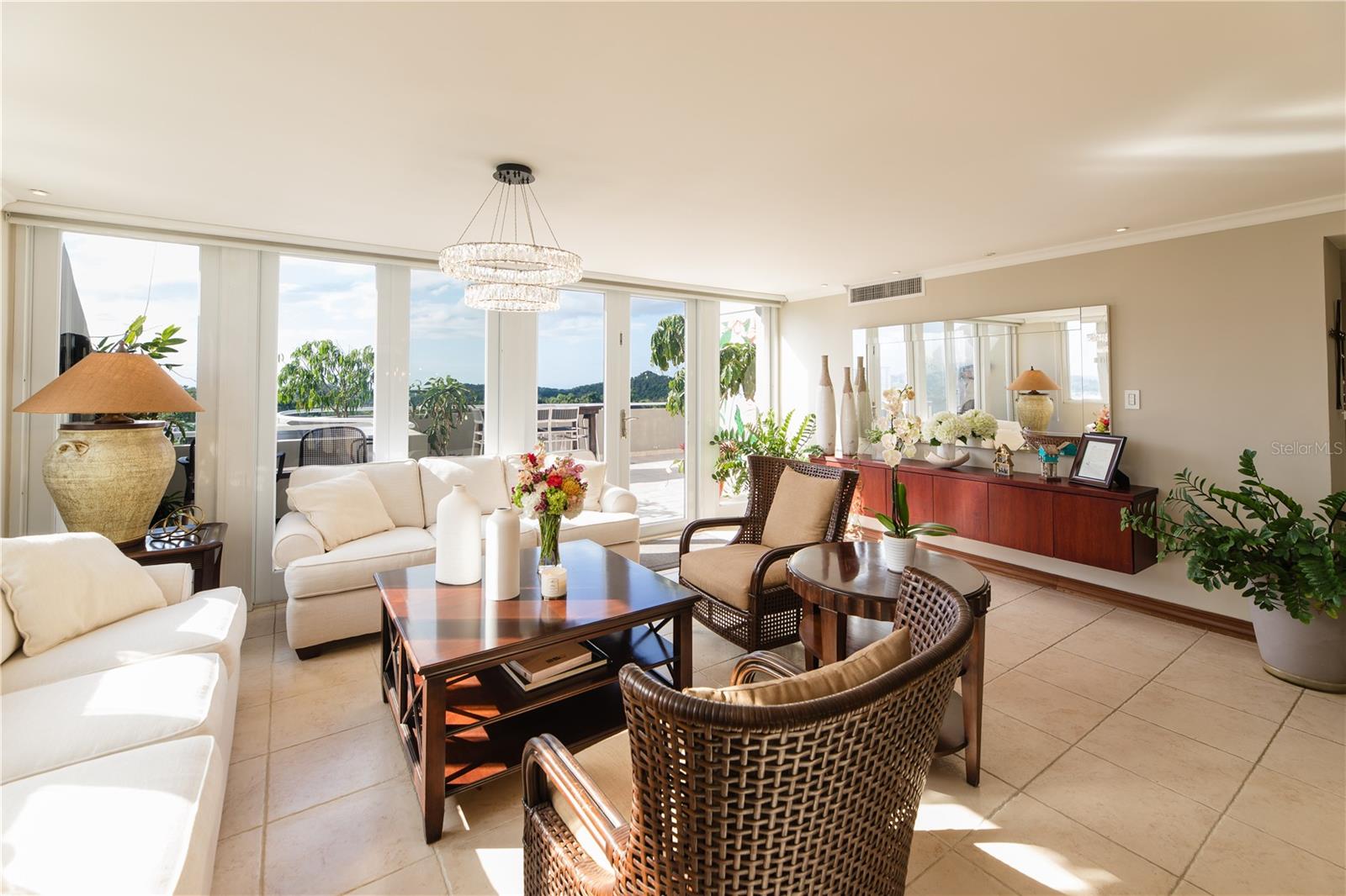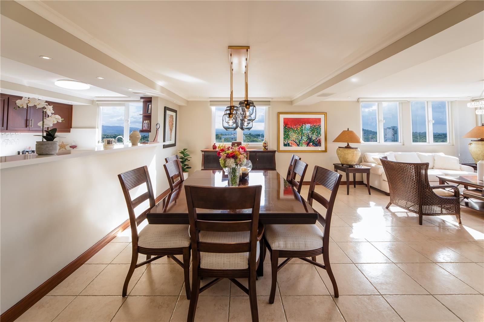 Beautiful, fully furnished and equipped penthouse apartment featuring 2,145 SF of interior space and a 540 SF terrace facing PR-2, with panoramic views of San Juan, Cataño, Guaynabo, and Bayamón. The apartment includes an entrance foyer, a spacious kitchen, a dining area with an 8-seat table, a family room with sofas and a center table, a living room with a plasma TV, and two generously sized bedrooms—each with its own walk-in closet and full bathroom—as well as a laundry room. Thoughtfully decorated with unique and beautiful artwork, this home is in mint condition. Two covered parking stalls are conveniently located near the entrance to the elevator lobby. Building amenities include a pool, gym, visitor parking, full backup power generator, water cistern, and an air-conditioned lobby. Offered in completely move-in-ready condition with high-end finishes and furniture.