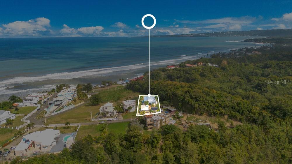 From Rincon head north on SR115 for about 15 minutes until you arrive to Camino de la Playa. Turn left there. Follow the road and you will see Olajas Bar and Restaurant on the left after the Pico de Piedra beach. At the first street after that restaurant you make a right and go up the hill. Then make a left and drive all the way to the end. The house will be on the left side at the end of the road.