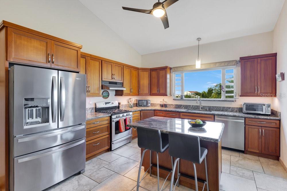 Experience the epitome of luxury coastal living in this breathtaking seaside retreat, where elegant design meets natural beauty. Nestled above an exclusive stretch of coastline, this estate offers amazing ocean views, beach access within 200 meters, and a seamless indoor-outdoor lifestyle tailored for relaxation and refined entertaining. When you walk through the front door he expansive open hallway flows effortlessly into the open living and dining room. A gourmet chef’s kitchen is outfitted with updated appliances, custom cabinetry, and elegant granite countertops. Just off the kitchen is the back terrace perfect for enjoying the sunsets over the horizon or to enjoy your morning coffee overlooking the turquoise water that Western Puerto Rico is famous for. The primary bedroom is a private sanctuary, with an en-suite spa-inspired bathroom, private balcony with uninterrupted sea views. Across the hall from the primary bedroom are the two other bedrooms and shared bathroom. Laundry room is conveniently located just off the great room and just across the hallway is the pantry. In front of the main house you have 3 covered parking spaces and a very spacious in-law studio suite, complete with kitchen and bathroom. The detached studio is perfect for house guests or to rent out for passive income. Plenty of storage is available under the house and just off of the in-law suite, plus 15 solar panels on top of the 2 car carport. Property includes all appliances, solar panels, 4 batteries for the solar system and a solar hot water heater. This is more than a home—it's a lifestyle defined by elegance, tranquility, and the timeless beauty of the coast.