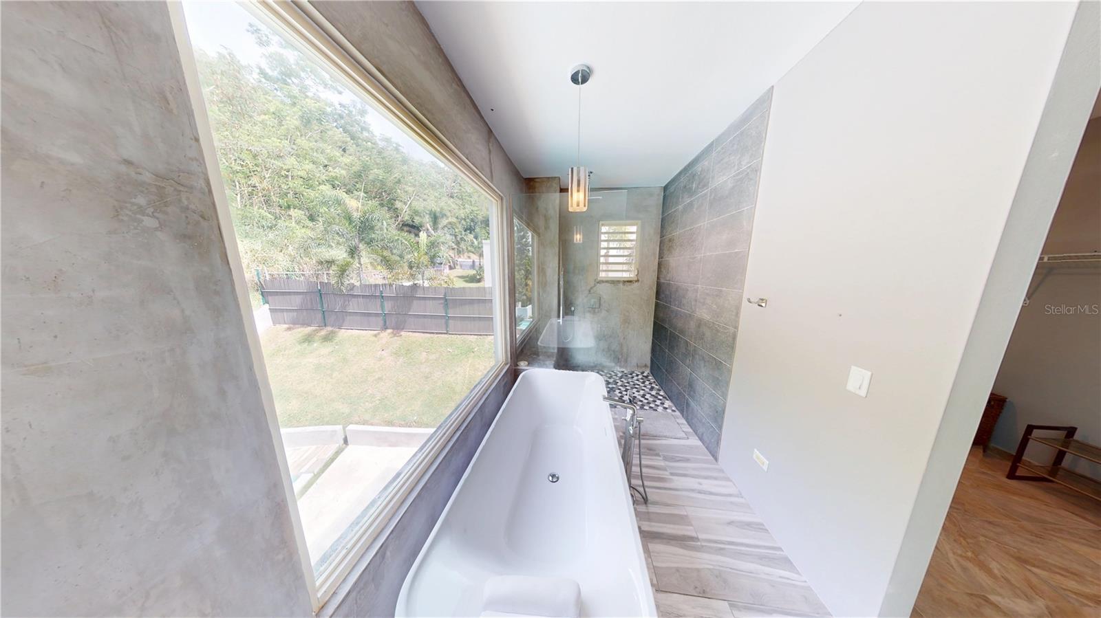 A beautiful staircase with panoramic window leads to the upper atrium, where the laundry room and four bedrooms are located, including two master suites with walk-in closets and luxurious bathrooms with dual sinks, showers, and soaking tubs. One master features a balcony with mountain views, while the second includes a private exercise area and large windows overlooking the pool, offering a serene, resort-style awakening.