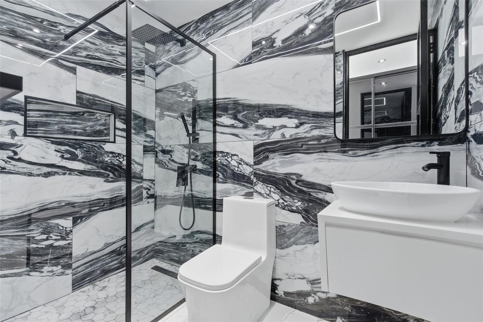 Completely remodeled, extended, and modern residence with elegant fascia, multi-room audio system, and recessed LED lighting that highlight its spacious and contemporary spaces. Enjoy excellent natural lighting and cross ventilation that bring freshness and comfort throughout the home. The residence has a swimming pool, large patio, and a covered terrace with three ceiling fans, ideal for entertaining family or friends. It has a covered carport with capacity for 2 to 3 cars, a front porch, and a front garden area. Inside, it offers a cozy living room, dining room, porcelain tile floors, laundry connection on the first floor, and a modern kitchen fully equipped with new appliances: dishwasher, refrigerator, stove, range hood, and microwave oven. It includes several storage closets for added convenience. The master bedroom has a walk-in closet, private bathroom with modern PVC cabinetry, niche, elegant TV cabinet, and laundry hookup on this second level as well. This 4-bedroom, 2.5-bathroom property, approximately 2,100 sq. ft. and a 362.94 sq. m. lot, offers an additional bonus room available for any use of your choice, whether it be an office, gym, study, or family room. The third bedroom has a walk-in closet. The property has hot and cold water connections. The development has a basketball court, a playground, and a gazebo. This residence has an unbeatable location in a convenient and strategic area just 2 minutes from the PR-22 expressway, close to restaurants, Plaza del Sol and Río Hondo Mall shopping centers, schools, hospitals, 15 minutes from the beach, and approximately 30 minutes from Luis Muñoz Marín Airport.