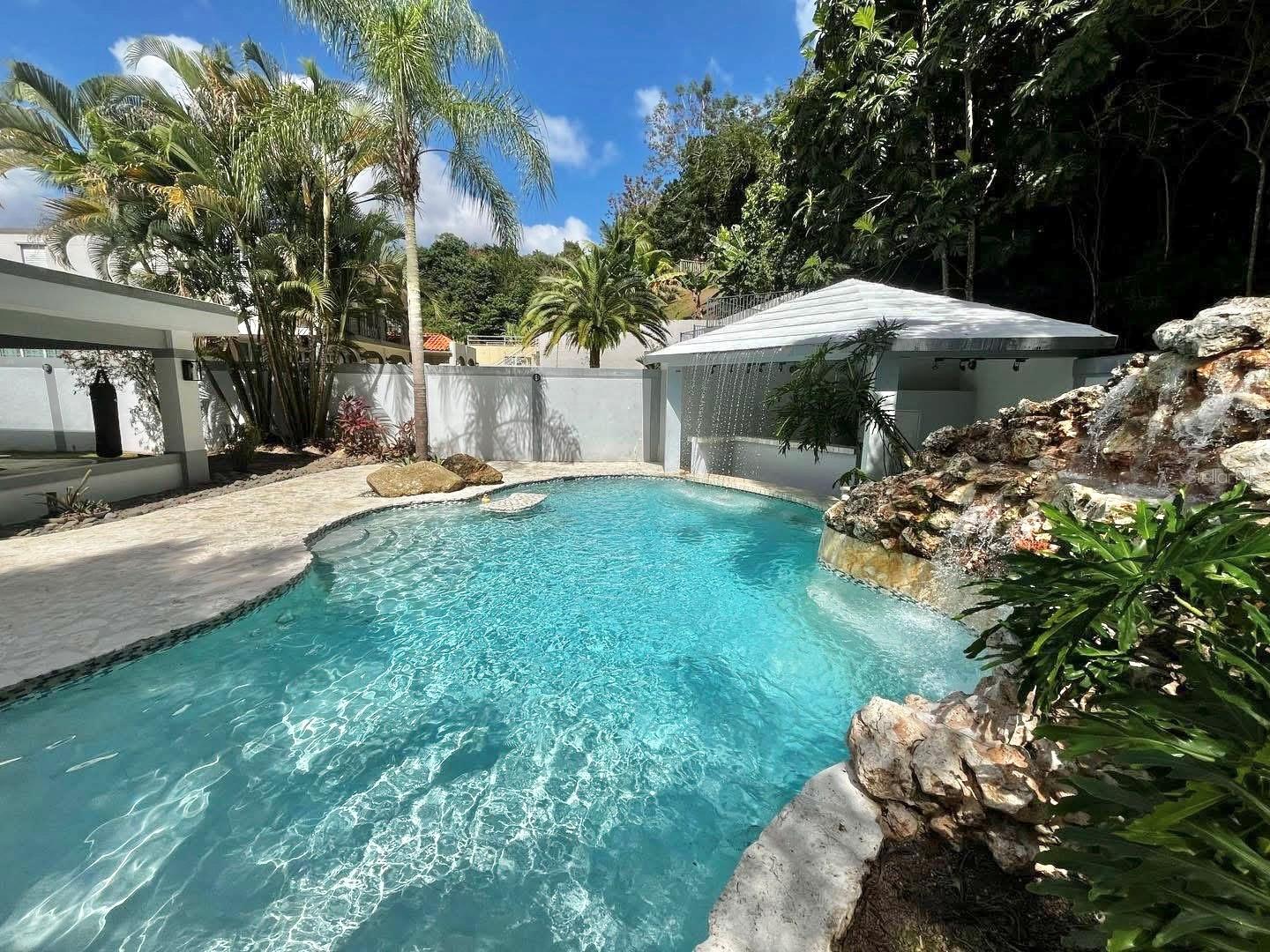 Beautiful home in Montehiedra. The rent includes HOA ($236.00 monthly), pool maintenance, gardening services, inverter maintenance every 6 months, and security fees. The property features 4 spacious bedrooms and 3.5 bathrooms, including one in the pool area, which also has a jacuzzi, stools and a table inside the water, fountains, a swim-up bar with sink and countertop for appetizers. It includes a water cistern with electric pump, 5 inverter A/C units, refrigerator, stove, microwave, dishwasher, and lighting fixtures. Covered terrace with ceiling fans. Large backyard area for activities with no rear neighbors.