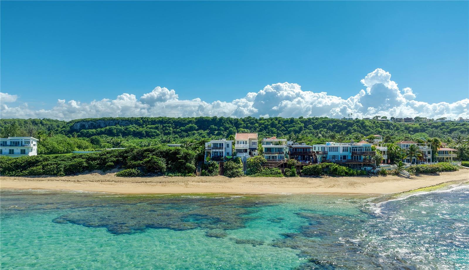 Set directly above the turquoise waters of Shacks Beach, this five-bedroom, three-and-a-half-bath residence embodies the essence of refined coastal living. Blending timeless Caribbean architecture with modern amenities, it offers sweeping ocean views and two expansive terraces that capture the rhythm of the waves. The main home features three bedrooms, two full bathrooms, and a powder room. The primary suite, located on the top floor, enjoys panoramic ocean vistas, a private balcony, a generous walk-in closet, and direct access to a beautifully appointed den lined with custom wood cabinetry with the sea as your backdrop. The main living floor offers two spacious guest bedrooms, a full bath, and a powder room. The open kitchen and great room flow naturally to the terraces, inviting indoor-outdoor living at its best. A private staircase leads directly down to the sand, creating an effortless connection to one of Puerto Rico’s most beautiful beaches. On the lower level, a fully independent guest apartment includes two comfortable bedrooms, a bathroom, a full kitchen, and living-dining area, ideal for visitors or private hosting. This level also houses the temperature-controlled wine cellar and access to the two-car garage. Sustainable living is seamlessly integrated with solar panels and Tesla Powerwall batteries, ensuring energy efficiency and peace of mind. Surrounded by lush tropical vegetation, the property maintains a serene sense of privacy and natural beauty that make Isabela’s coast so sought after. From sunrise coffee on the terrace to evenings framed by ocean breezes, this Shacks Beach residence captures the quiet luxury of life lived by the sea. Located along Puerto Rico’s northwest coast, Shacks Beach is known for its pristine reefs, golden sand, and year-round breezes. A haven for divers, kite-surfers, and beach lovers alike, the area retains a quiet exclusivity while being minutes from the restaurants, boutique hotels, and art-filled streets of Isabela and Aguadilla.