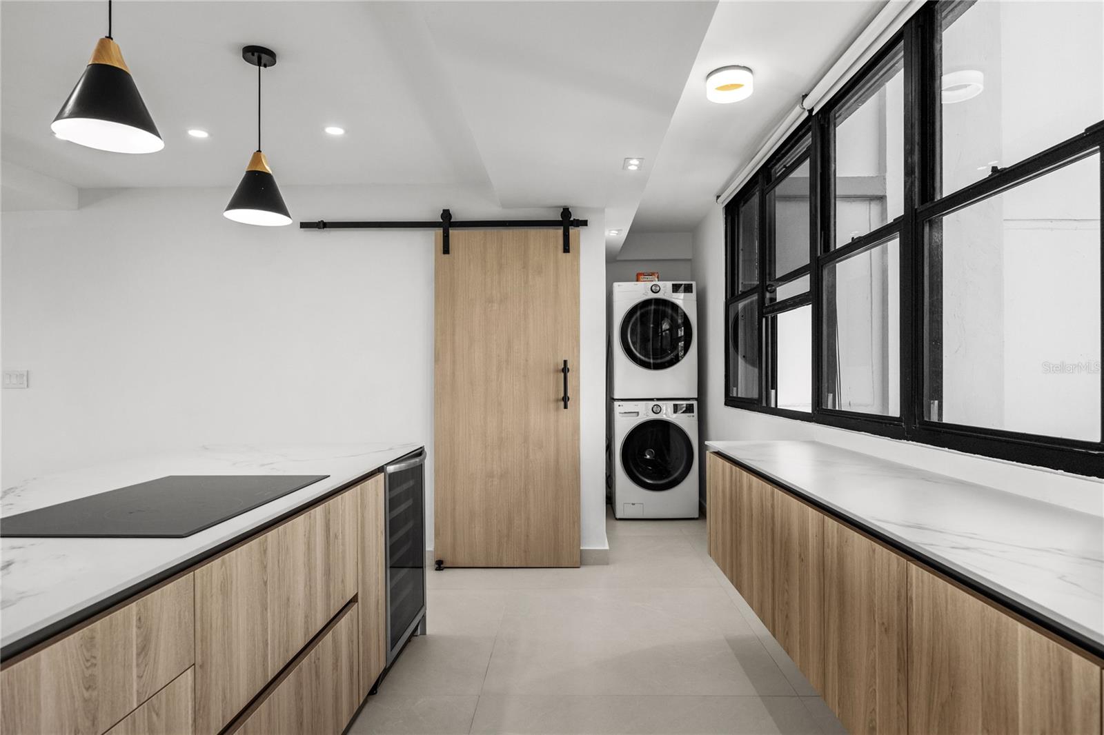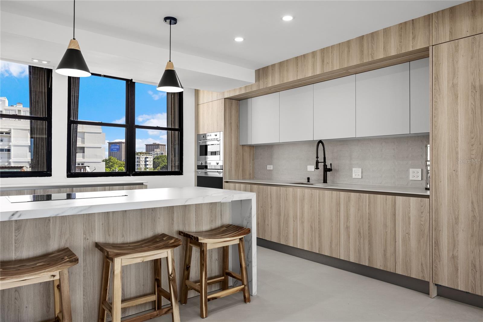 The kitchen is a true masterpiece of craftsmanship and functionality. Custom Italian cabinetry with in-line LED lighting pairs with Arklam sintered stone countertops, a premium surface capable of handling cookware straight from the oven. The integrated appliance suite is exceptional:?• Liebherr Monolith fully integrated refrigerator & freezer?• SMEG oven, microwave, induction cooktop & dishwasher?• Frigidaire wine fridge?• Kohler sink?