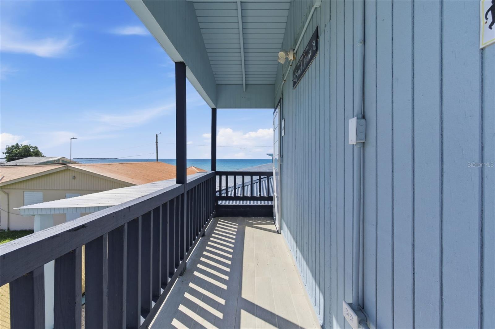 Elevated layout with kitchenette, full bathroom, and partial water views