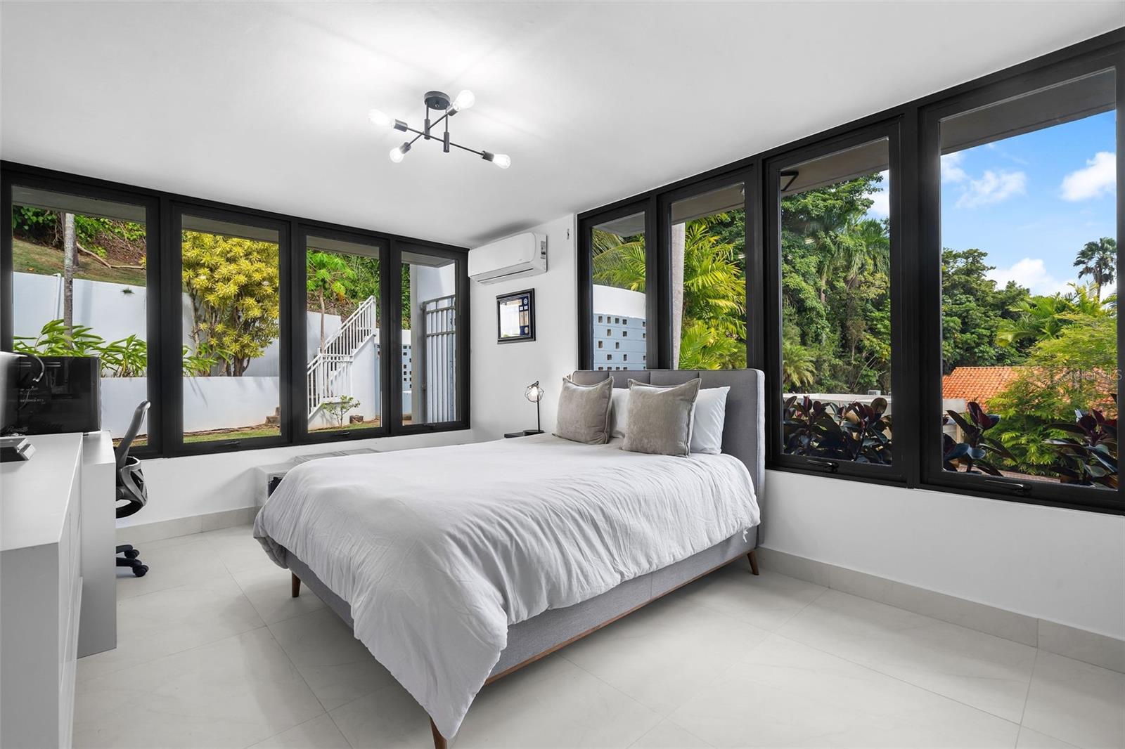 Located in the exclusive gated community of La Colina in Guaynabo, this impressive 3,700 sq ft split-level residence sits on a spacious 1,372 sq mt corner lot and showcases beautifully remodeled interiors with attention to detail throughout. High vaulted ceilings and floor-to-ceiling windows bring in natural light, creating a smooth connection between the indoor and outdoor spaces. The home benefits from great natural ventilation, and its corner location provides added privacy and a sense of openness. The updated kitchen and bathrooms feature high-end finishes, complemented by brand-new windows that enhance the unique style of the home.