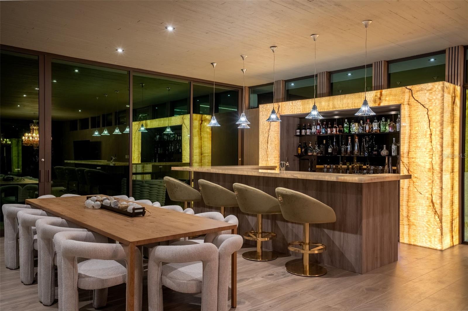 Additional DetailsInteriorTotal Bedrooms 7 Full Bathrooms 7 Half Bathrooms 3 Laundry Laundry Room Flooring Hardwood, Tile, Travertine Appliances Bar Fridge, Built-In Oven, Dishwasher, Freezer, Ice Maker, Microwave, Range, Range Hood, Refrigerator, Water Filtration System, Whole House R.O. System Other Interior Features Coffered Ceiling(s), High Ceilings, PrimaryBedroom Upstairs, Sauna, Walk-In Closet(s), Wet Bar, Window Treatments ExteriorConstruction Materials Concrete Garage Space 2 Heating Electric Cooling Central Air, Zoned Other Exterior Features Balcony, Outdoor Grill, Outdoor Kitchen, Outdoor Shower, Private Entrance, Private Yard, Sauna RoomsFirst Floor Bedroom 1, Bedroom 2, Bedroom 3, Bedroom 4, Bedroom 5, Laundry, Living Room, Sauna, Kitchen Second Floor Primary Bedroom, Primary Bathroom, Additional Bedroom, Media Room GeneralDays on Market 51 Garage Yes Pets Allowed Cats OK, Dogs OK Spa Yes Area and LotLot Size in Acres 1.06 Living Area in SQFT 10701 Architectural Style Contemporary Utilities Electricity Connected, Sewer Connected, Sprinkler Recycled, Water Connected View Golf Course, Water FinancialAnnual Tax $0 HOA Fees $7,441 Location