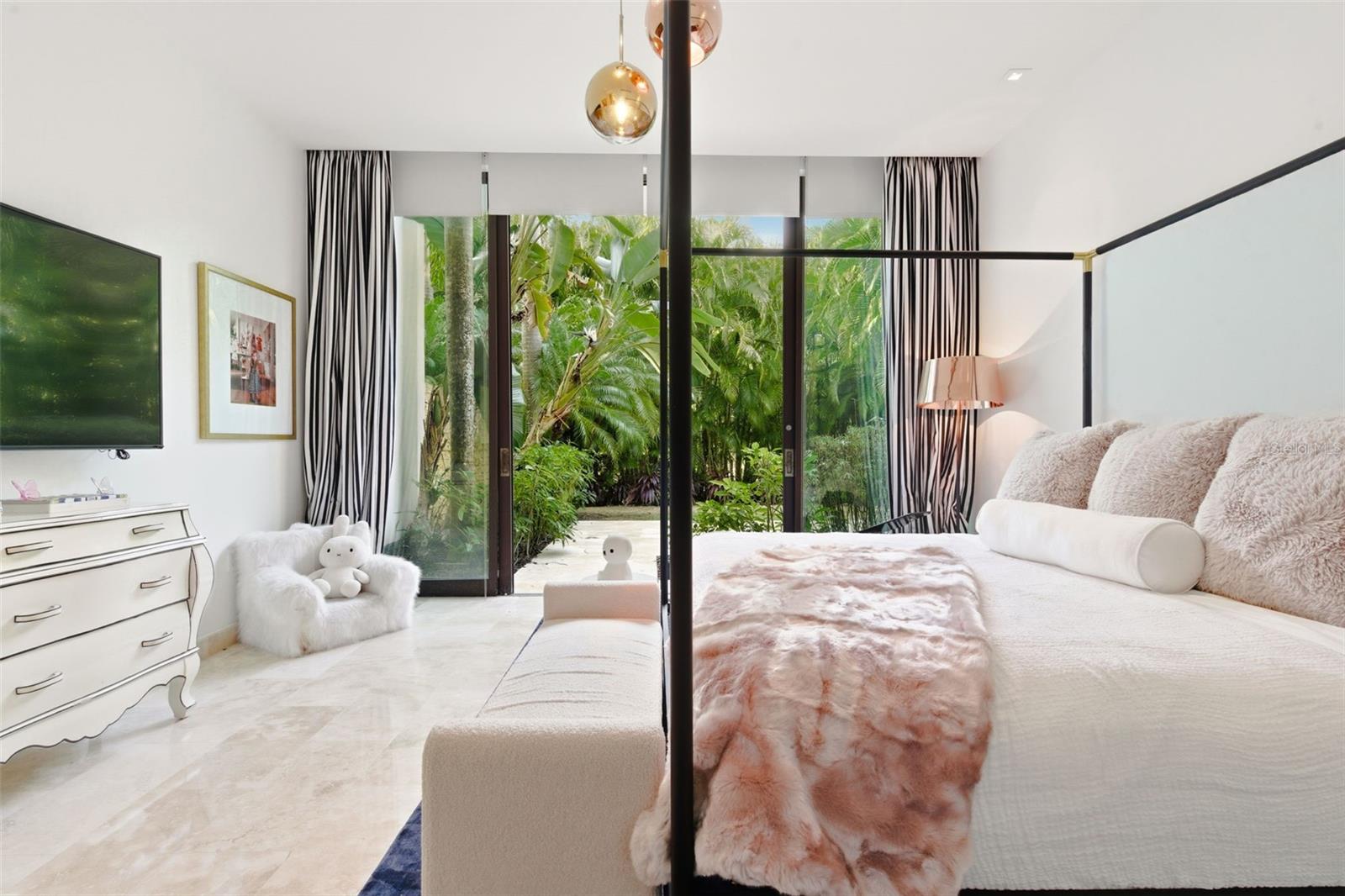 Outdoor living throughout the property is resort-inspired, offering multiple terraces, lounging areas, outdoor showers, curated tropical landscaping, a private sauna, and seamless indoor–outdoor connectivity. The architectural scale, refined finishes, and thoughtful design elements including imported stones, custom millwork, Baccarat fixtures, and smart-home features—create an atmosphere of unparalleled luxury.