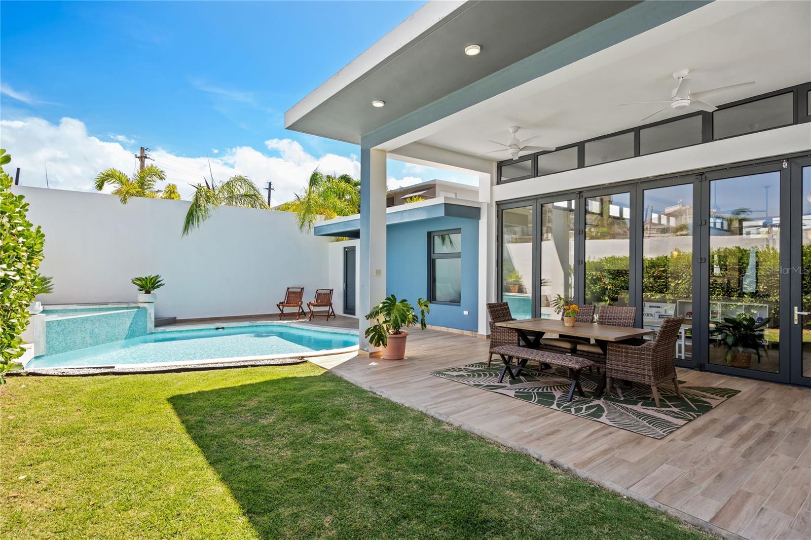 Designed for both relaxation and entertaining, the seamless indoor-outdoor flow leads to a private backyard oasis complete with a pool, two alfresco seating areas, and a built-in BBQ—perfect for enjoying the island lifestyle.