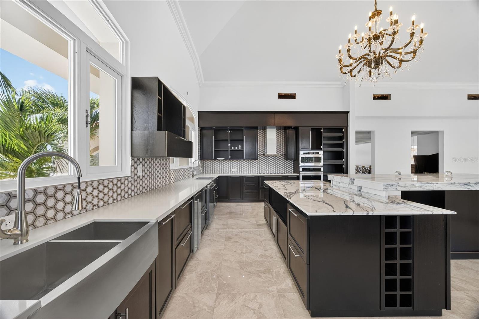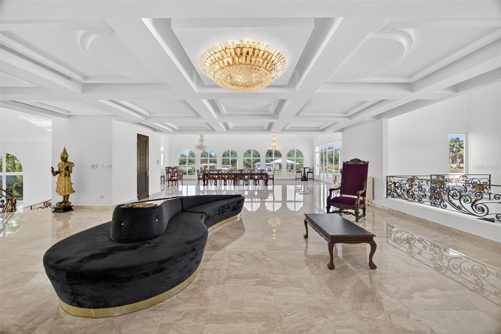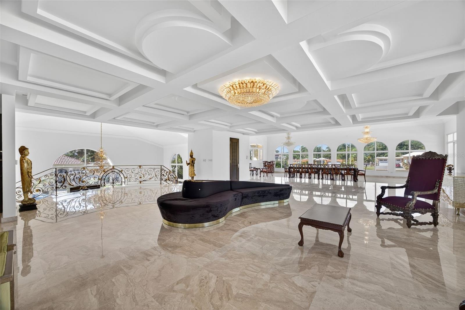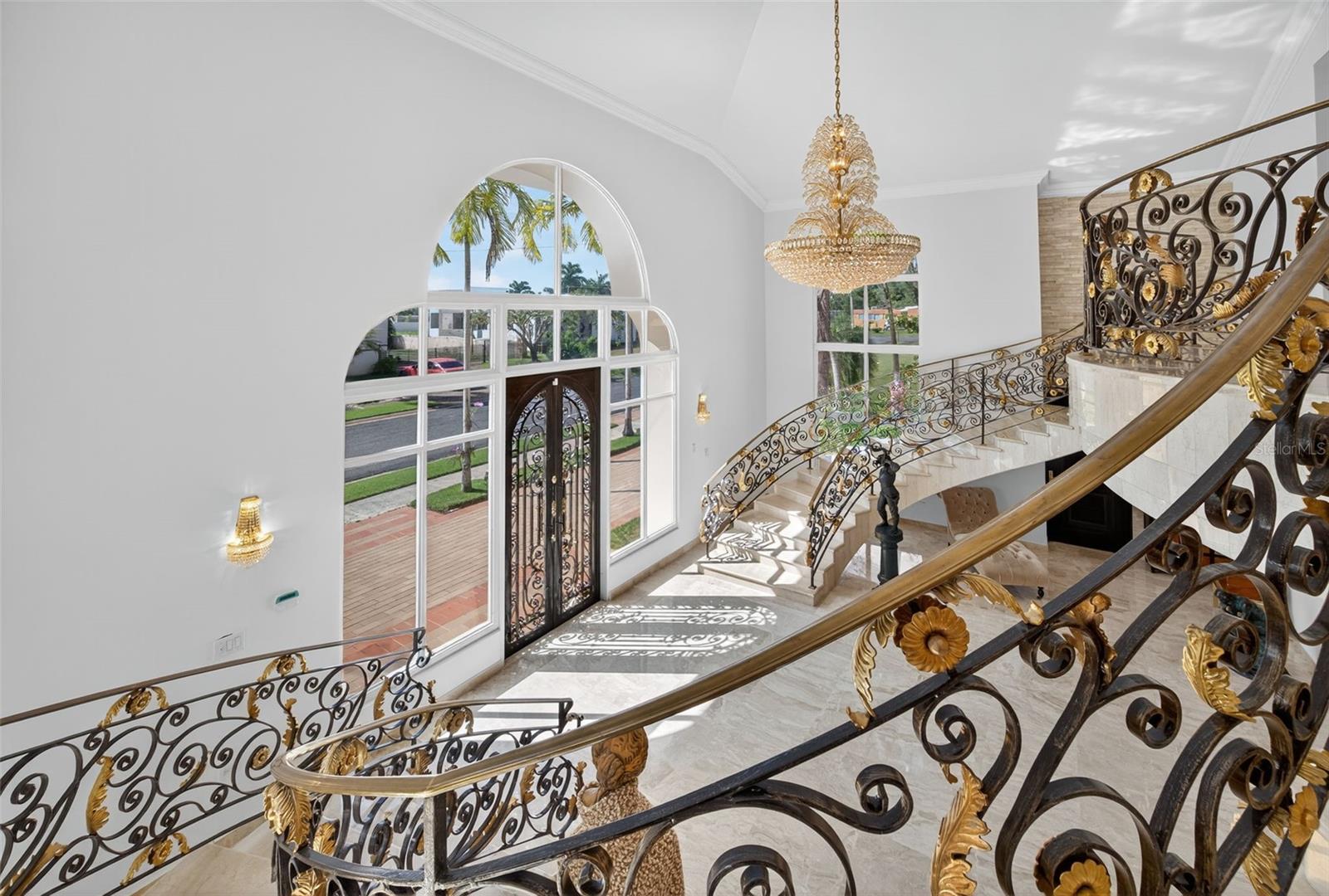 A double-height foyer, dual circular staircases, and stunning crystal chandeliers set the tone for elegance. Spacious living and dining areas connect seamlessly with a chef’s kitchen—perfect for both family living and grand entertaining.