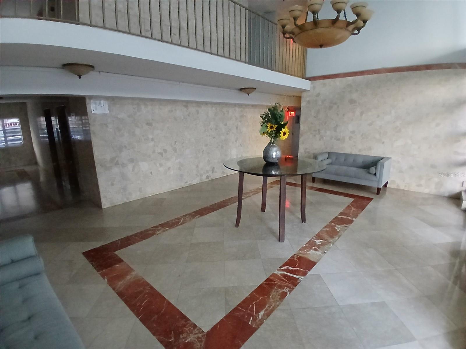 Upon entering unit 907 one enters an entrance hallway with the kitchen to the right. To the left in the entrance hallway is a walk in closet with the bathroom on the other side of the walk in closet. The entrance hallway feeds into the combination dining/living room/bedroom great room. To the left of the great room is another entrance to the unit's bathroom. Straight and to the right across the great room is the unit's covered balcony. Straight and to the left of the great room is another closet. The New San Juan condominium building itself has a number of amenities and activities including, but not limited to, pool, poolside barbecue, gym, laundry room, common office area, activity room and 24 hour security.