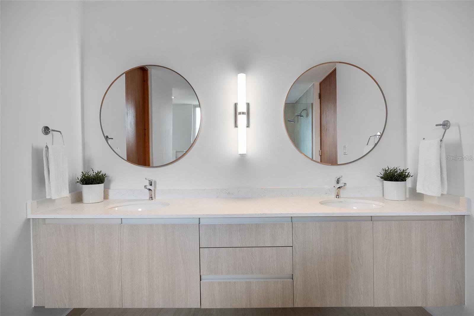 Upon entry, residents will enjoy an abundance of natural light flooding through the plethora of windows from the open living space and its cathedral 13' FT ceilings. This expansive and thoughtful 3,400 SF residence includes 4 sizable bedrooms each with their own en-suite bathrooms including nicely outfitted quartz vanities and chrome fittings. The primary grand suite has a sprawling en-suite master bathroom with a spacious double shower, luxurious dual vanity and an oversized walk-in closet.