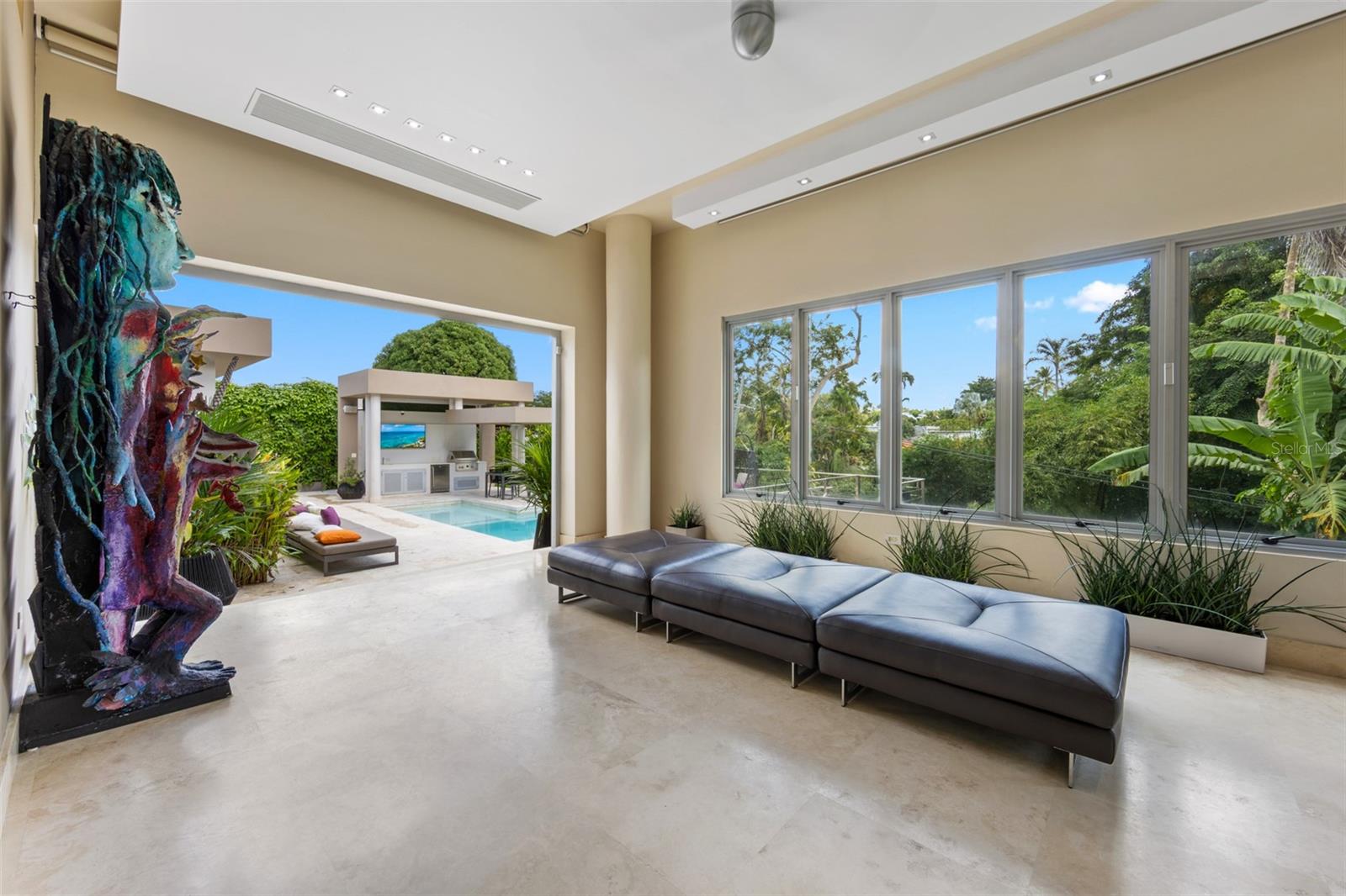 This stunning one-level contemporary residence offers 4 bedrooms, 3.5 bathrooms, 4,646 sq ft of refined interior living space, and a 1,608 sq ft lot designed for luxury and comfort. Flooded with natural light and featuring expansive open-concept areas, the home seamlessly integrates with its resort-style outdoor spaces, including a beautifully designed pool, terrace, and outdoor kitchen. The property is delivered fully equipped with an 80-panel solar system with four Tesla batteries, a full Control4 smart-home automation and A/V ecosystem, whole-house audio, six televisions, central A/C in the main living areas, and five Fujitsu split units throughout. The kitchen showcases Sub-Zero and Wolf appliances, an oversized island, and premium finishes. Additional features include a Monogram beverage center by the pool, washer and dryer, cistern, solar water heater, pool heater. A rare turnkey luxury offering in one of San Juan’s most desirable communities.