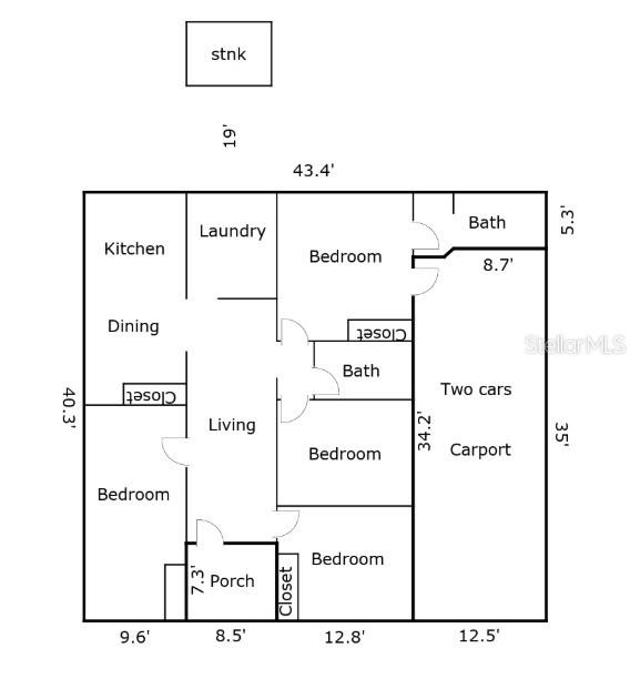 The residence offers four bedrooms and two bathrooms, a spacious living room, dining area, and kitchen. Additional features include an indoor laundry area.