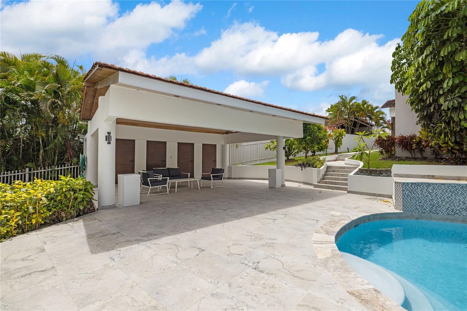 Welcome to La Villa de Torrimar in Guaynabo. Beautifully furnished home in an exclusive and private gated community. This one level tropical residence features 4 bedrooms, 3.5 bathrooms, and open-concept living and dining areas filled with natural light. Master bedroom with an en-suite bathroom and walking closet. A junior suite with an en -suite bathroom and a spacious closet . Two bedrooms share a full bathroom. The gourmet kitchen is fully equipped with stainless steel appliances and a dinette area. The heart of the home is a resort-style outdoor retreat boasting a stunning swimming pool, and a spectacular Gazebo. Ideal home for entertainment for family and friends. For your convenience this home offers Solar Panels and Tesla Batteries. Exclusively for La Villa de Torrimar residents enjoyment: 24/7 security, fitness room, activity room, beach tennis courts, basketball, tennis courts, volleyball courts and playground area. Conveniently located close to private schools, shopping centers and other places of interest.