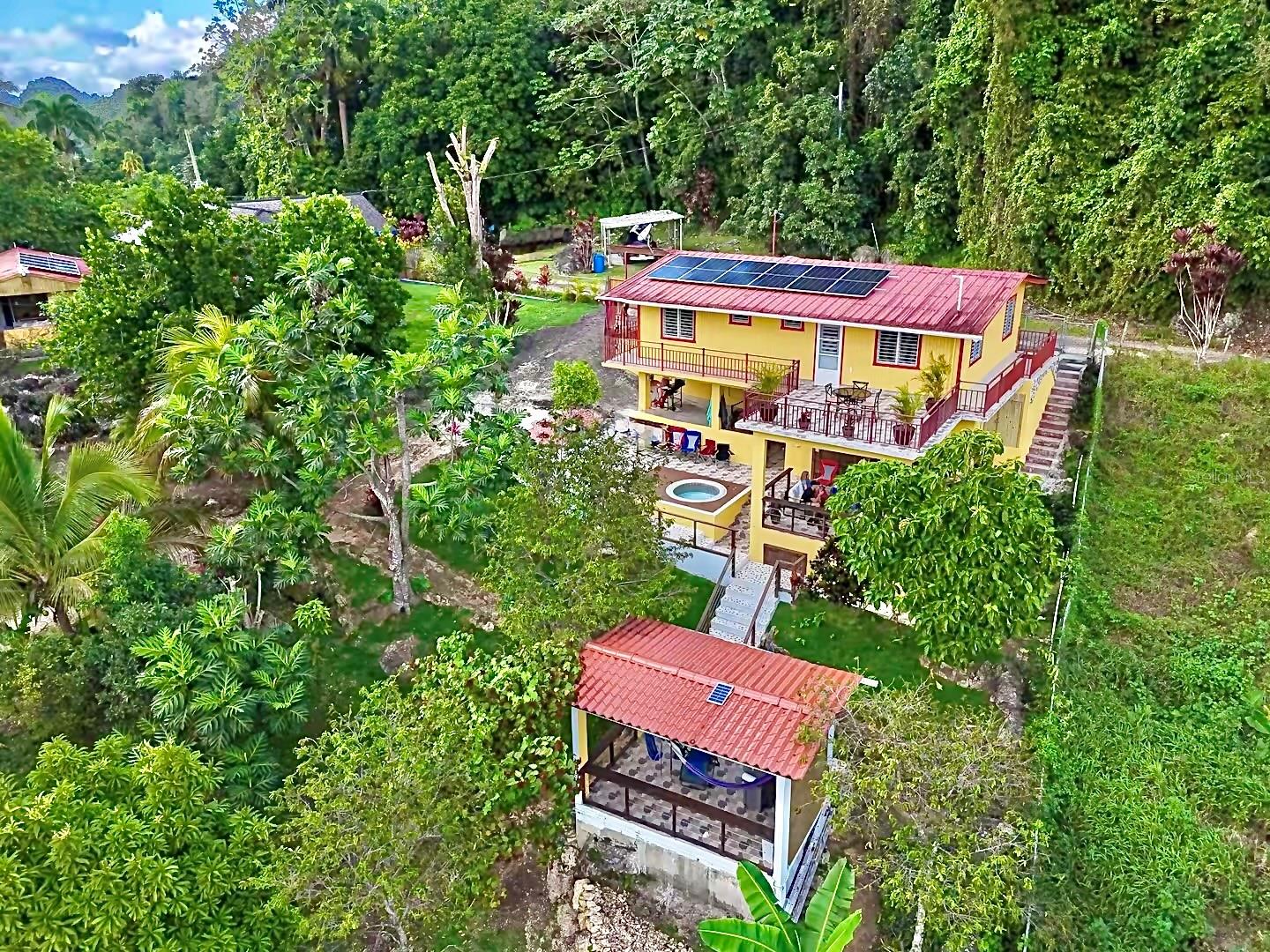 Property located in the mountains of Utuado featuring a main house and an additional guesthouse on approximately 1.6 acres (6,517 sqmt) of land, each offering about 1,200 square feet of living space. The property offers a total of 6 bedrooms, 5 full bathrooms, and 1 half bathroom. Each residence includes 3 bedrooms and 2 full bathrooms; the main house also features an additional exterior full bathroom, while the guesthouse includes an exterior half bathroom. Both homes have independent layouts that provide privacy and flexibility. The main house is equipped with a fully paid solar system with 13 panels, a 15 kW inverter, and three 10 kW batteries, and the guesthouse includes a fully paid solar system with 6 panels, a 5 kW inverter, and one 10 kW battery. Property has 2 electric meters and 2 water meters. A water cistern enhances self-sufficiency and helps reduce operating costs. The guesthouse is currently operating as a short-term rental with consistent income, while the main house is ideal as a primary residence, extended family living, or additional rental option. Set in a quiet natural environment with cool year-round temperatures and convenient access to Utuado town, Río Tanamá, and nearby eco-tourism destinations.