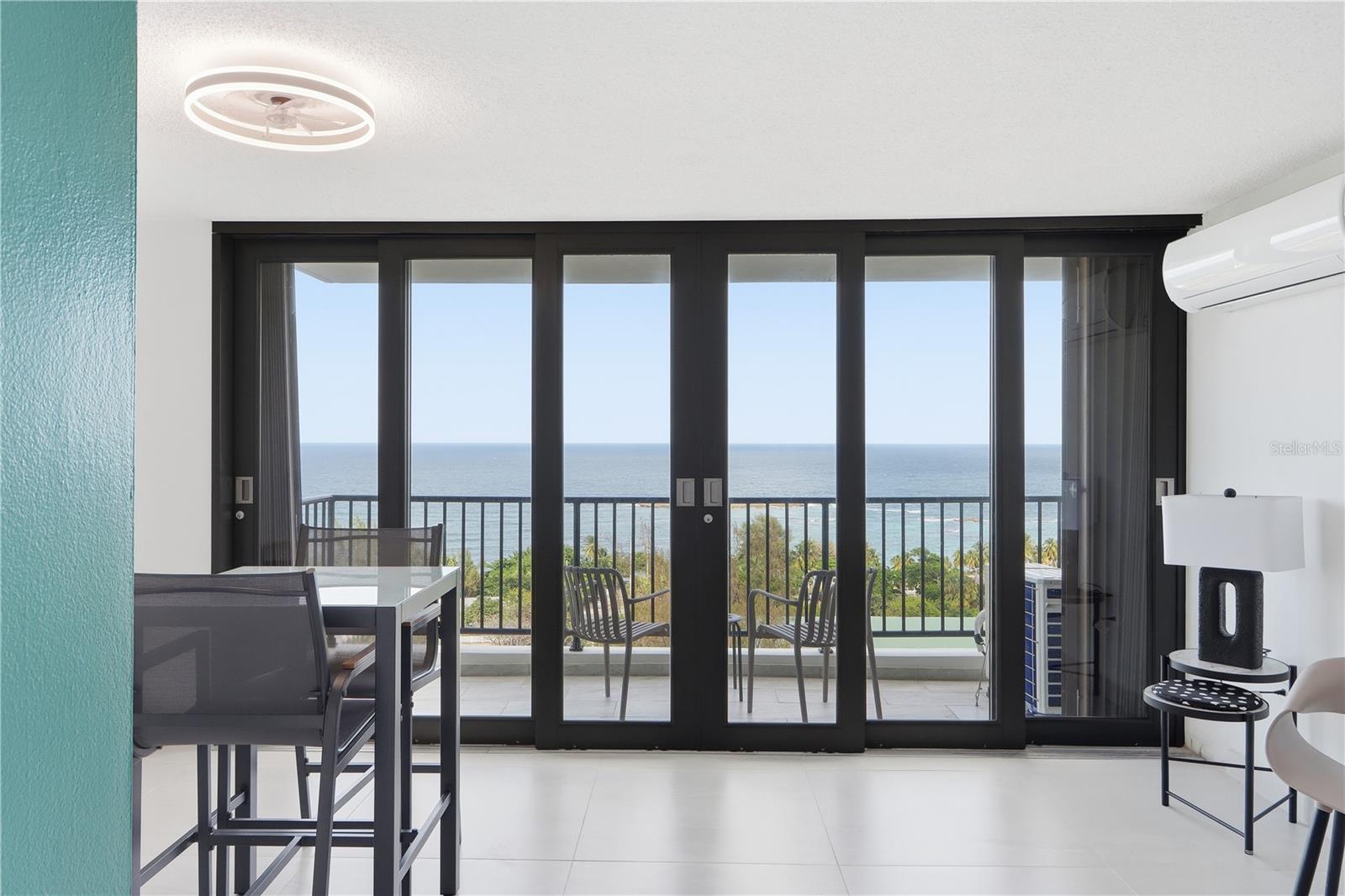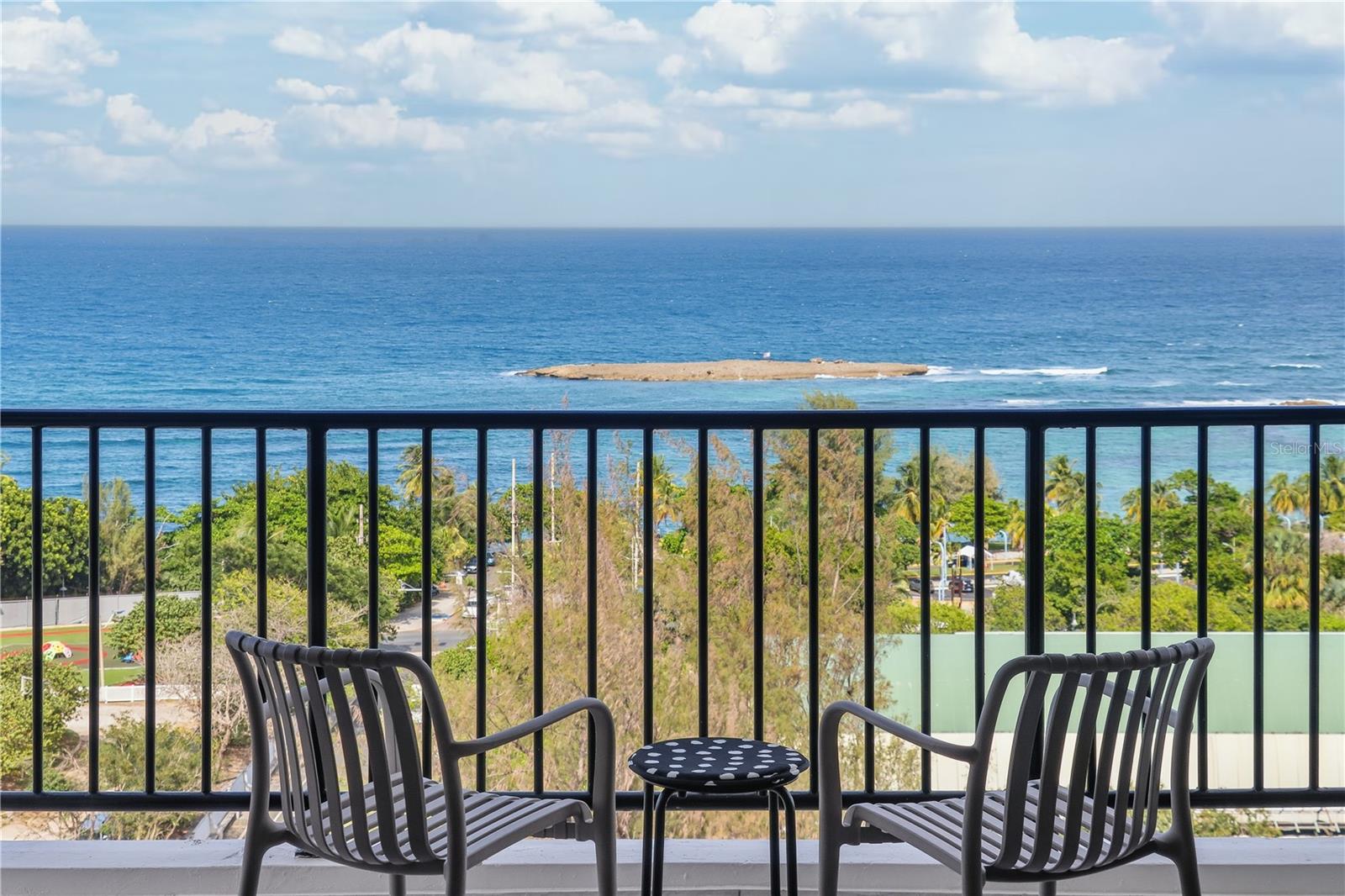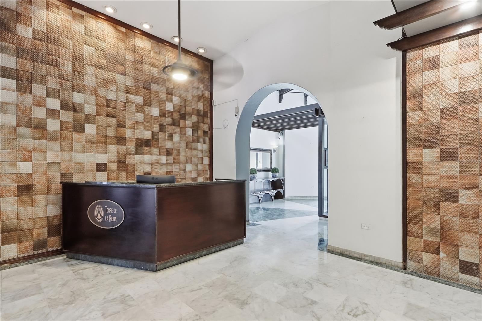 Step into this apartment and let the breathtaking views do the talking. Located on the 14th floor of the Torre de la Reina condominium, this 1,007 square foot residence features two bedrooms and one bathroom. The living room and kitchen have been updated with modern flooring, while the original parquet floors in the bedrooms have been preserved, adding warmth and timeless character. The remodeled kitchen and updated finishes complement the unit’s sleek feel, while sweeping panoramic views of Escambrón Beach take center stage. Brand-new hurricane-resistant sliding doors seamlessly connect indoor and outdoor living, and a new mini-split system enhances comfort in the living area. The apartment includes one designated covered parking space and the reliability of a full power generator. This gated community offers 24/7 security, a resort-style pool and gazebo, a designated car wash area, and an on-site coworking space known as District View—ideal for remote work or focused productivity. Enjoy exceptional proximity to the park and bike path, connecting directly to Old San Juan in one direction and Condado and Miramar in the other.