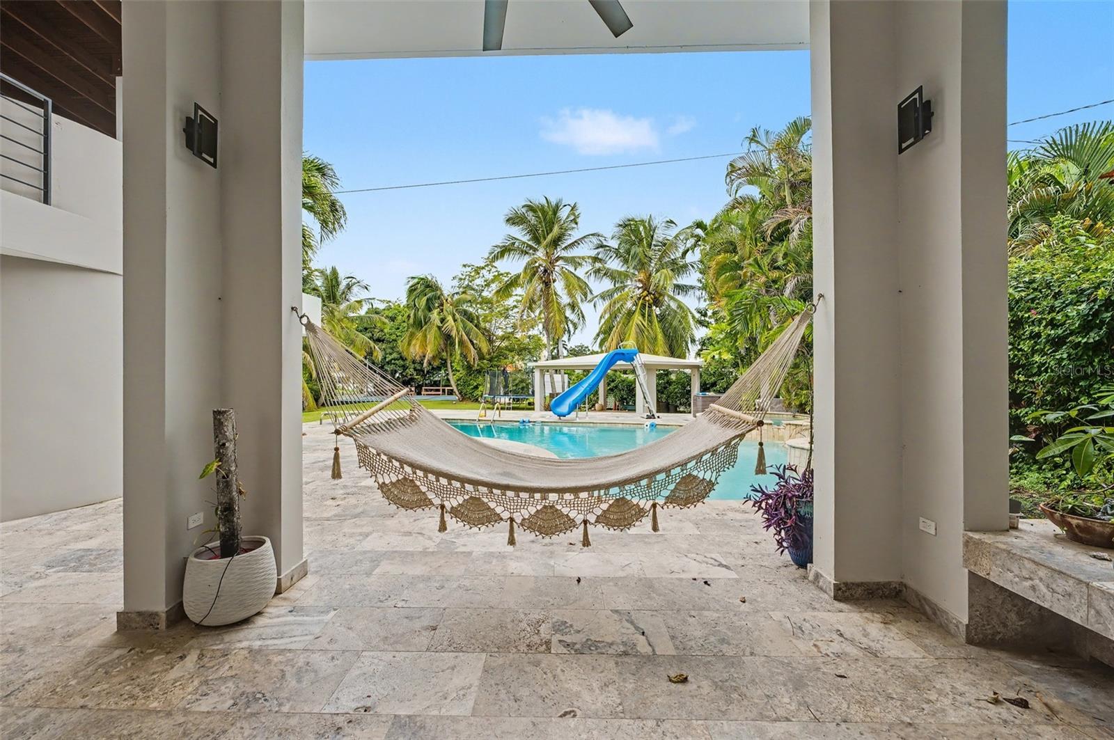 Rarely does a property of this caliber and versatility become available in the heart of San Juan. This unique offering consists of two separate, adjacent lots being sold together as one expansive estate, providing a level of privacy and recreational space that is virtually unmatched in the area. The primary residence, located at B1 Calle Santa Isabel, is a one-story tropical-style home encompassing approximately 2,845 square feet of gross living area. Designed for both elegance and durability, the residence features high-quality reinforced concrete construction and stunning marble flooring throughout its 12 total rooms. The floor plan is thoughtfully laid out with 3 spacious bedrooms and 3 full bathrooms. For year-round comfort, the home is equipped with a split-unit air conditioning system. The outdoor living space of the main house is a true sanctuary, featuring an extensive terrace area with both concrete and wood decking, a swimming pool complete with a slide, and a convenient two-car carport.