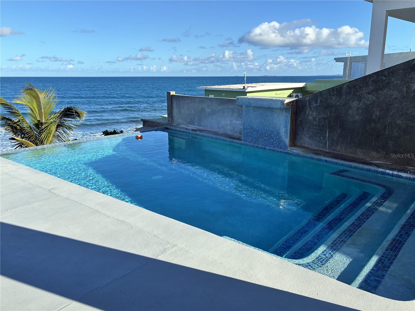 Outdoors, the property truly shines. An infinity-edge swimming pool appears to spill into the ocean beyond, creating seamless connection between land and sea. From the cliffside, private stairs lead directly down to the water. The manicured lawn provides a peaceful setting for relaxation, entertaining, or sunset gatherings.