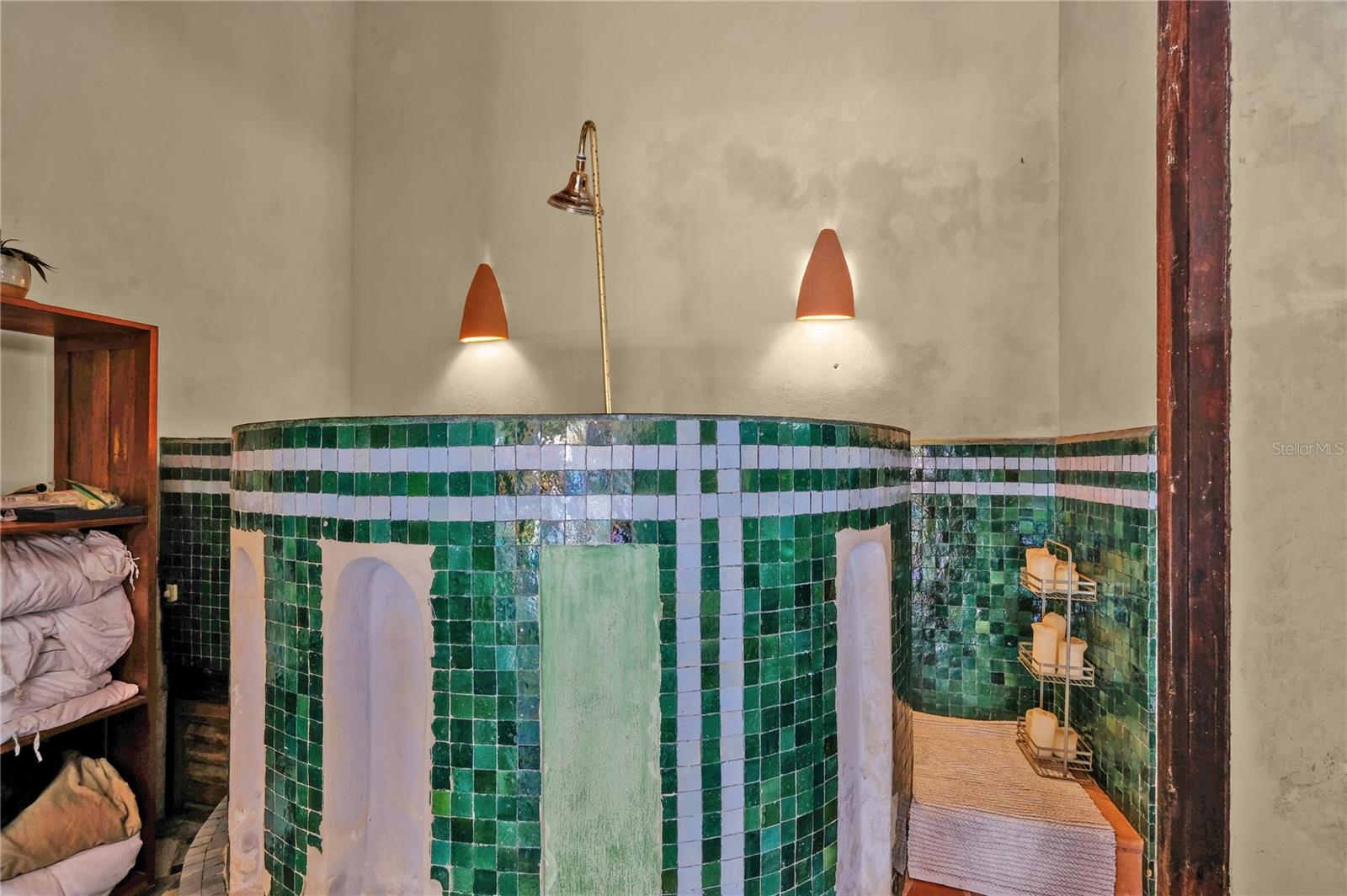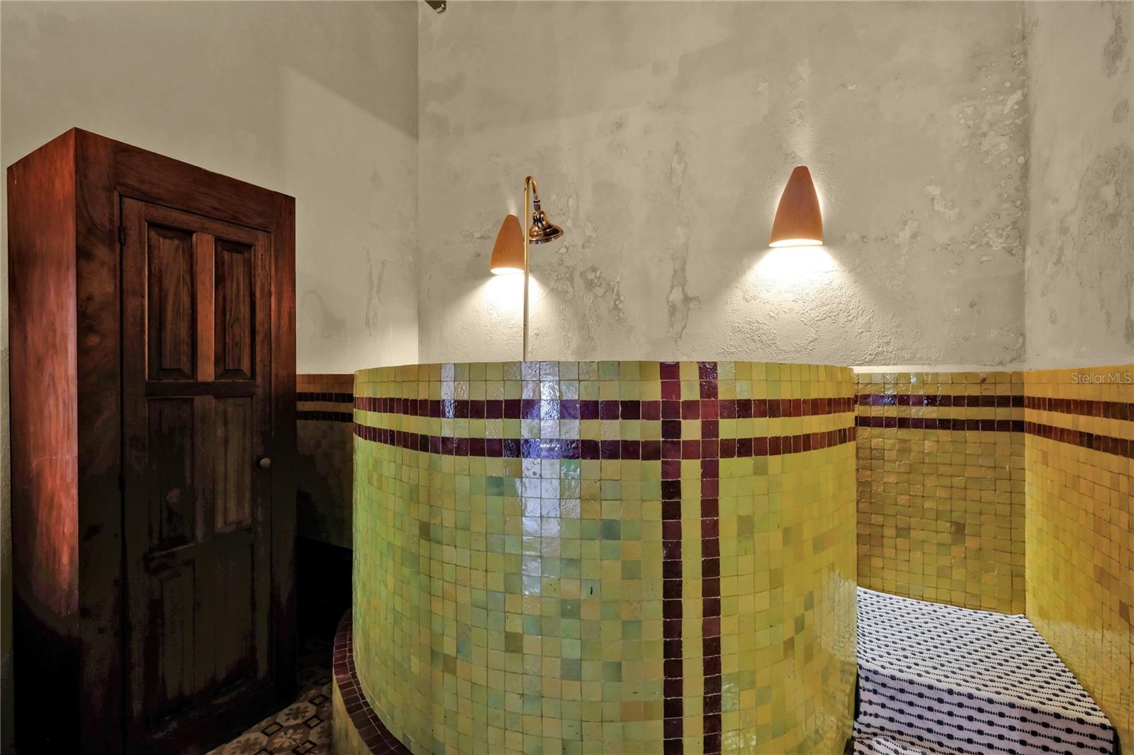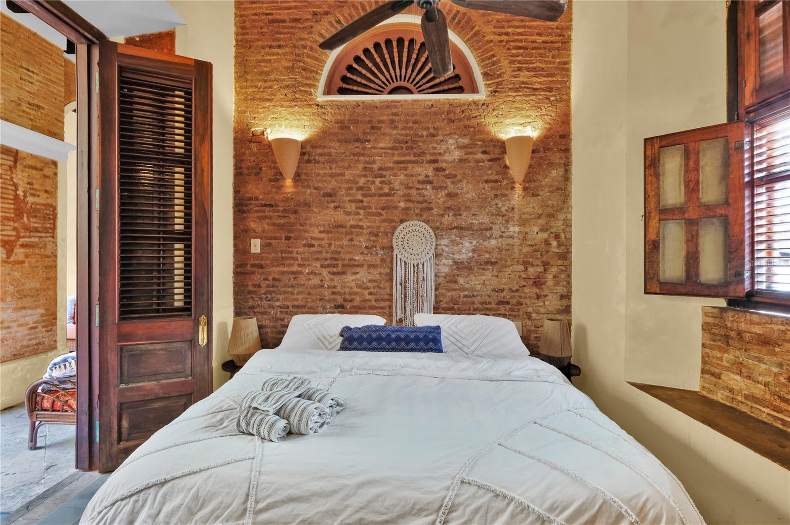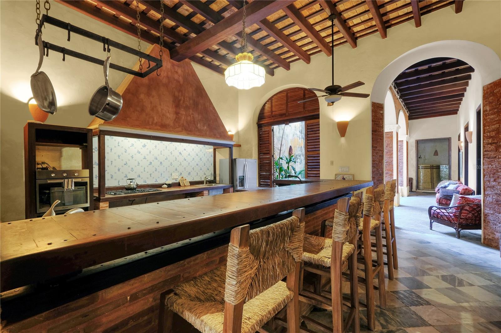 Impeccably Restored Historic Home with Enormous Rooftop Deck and Two Kitchens! Located on the corner of Sol St and C. de San Justo, this 6BR/2BA residence captures the imagination with whimsical terraces, beautiful window spindles, and a vibrant exterior. Owned in the 1800s by the then-wealthiest sugar baron, José Ramon Fernández, the property has continued to enjoy the presence of Old San Juan’s notable residents, including a former governor (circa 1900s). Thoughtful consideration was made while restoring this historic gem. All of the original bricks were saved, ironwood beams preserved, and frescos given new life. Showing like a dream, the property offers versatility for investors and/or multigenerational households. Boasting two floors, each level may be used independently or as a singular household. This remarkable 8,600 sqft estate offers 5,700 sqft of meticulously designed indoor living space, complemented by 2,900 sqft of outdoor living. Rich with antiquated charm, the interior has gorgeous flooring, arched doorways, wood doors, high ceilings, openly flowing layout, and updated wiring/plumbing (2000). Each level impresses further with a spacious living room, dining room, and a gourmet kitchen featuring stainless-steel appliances, gas ranges, breakfast bars, and a custom made tile backsplash. Fortunately, one tile was perfectly preserved in the kitchen wall, which made possible successful reproductions. Delft of Holland, the world’s leading experts in Spanish Colonial tile, was commissioned to reproduce the tiles for a truly authentic aesthetic. Every bedroom is generously sized with lovely views from the elegant windows. Marvelous for elevated self-care experiences, each full bathroom captures the ideal combination of sophistication and tranquility. Discover bliss with custom tilework and an oversized jetted tub/shower. Finally, bask in the entertainment possibilities of the massive rooftop deck. Sit beneath the string party lights, and relax with views of the cityscape. Alternatively, the open courtyard affords a serene space for conversation or leisurely morning espresso.