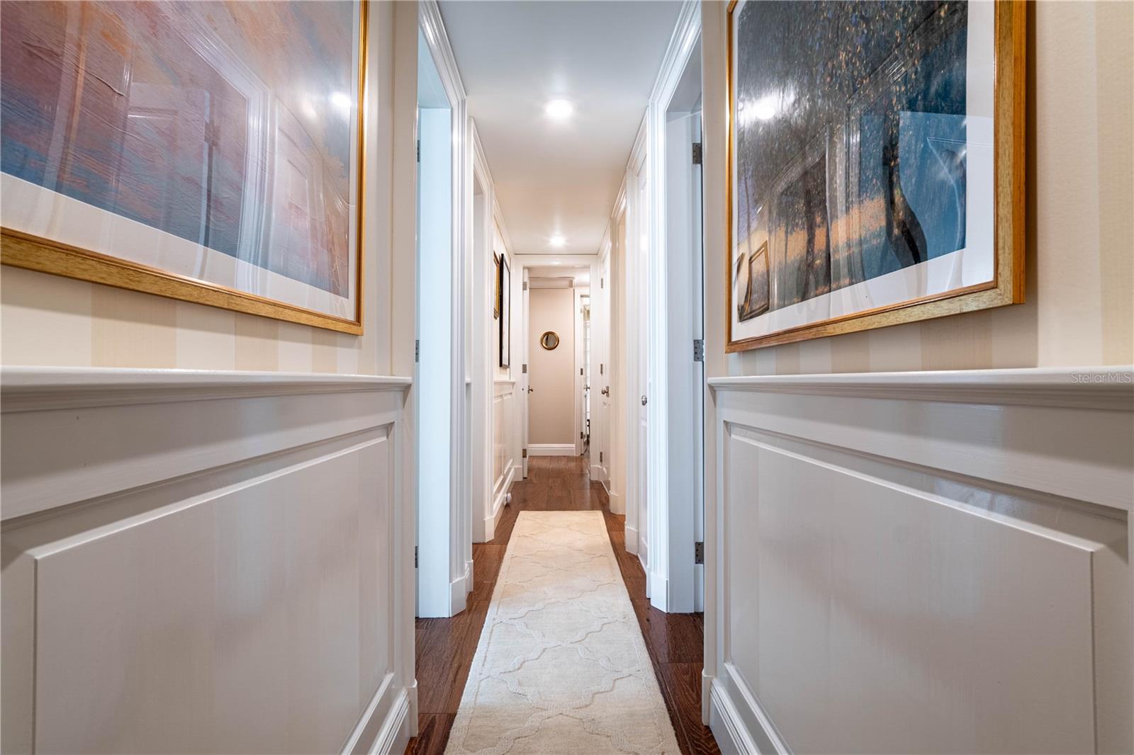 The residence showcases the highest level of craftsmanship throughout: Belgian hurricane-rated double-pane glass with Argon gas, electric storm shutters, custom cedar wainscoting, millwork, built-ins, and trim, Farrow & Ball wallpaper accents, and ceilings ranging from 9–10’ with Level 4 and 5 finishes. All interior doors are custom solid cedar, 8’ high, with Italian magnetic retractable hardware.