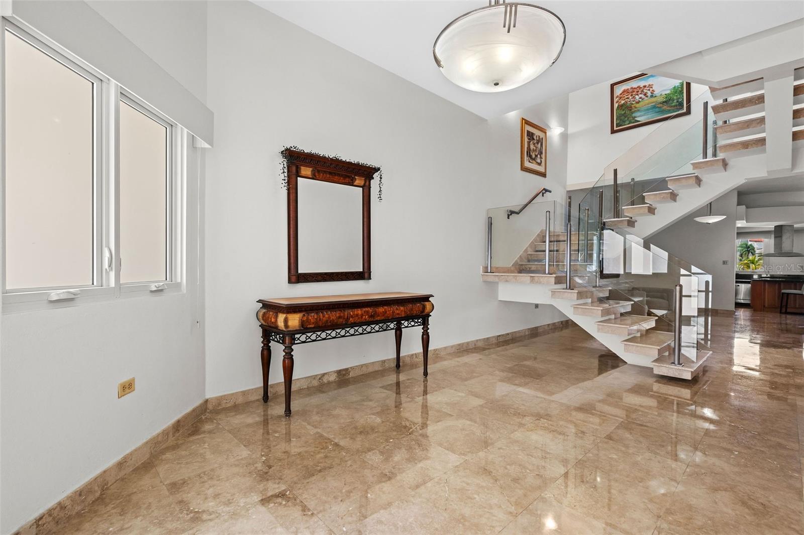 The residence features 4 generously sized bedrooms, 3 full bathrooms, and a half bath. Elegant marble floors flow throughout, creating a refined and timeless interior. The oversized primary suite serves as a private retreat, complete with a spacious en-suite bath designed for relaxation.