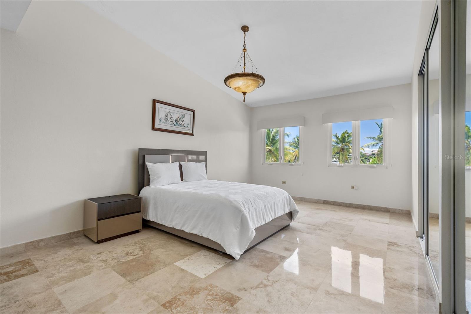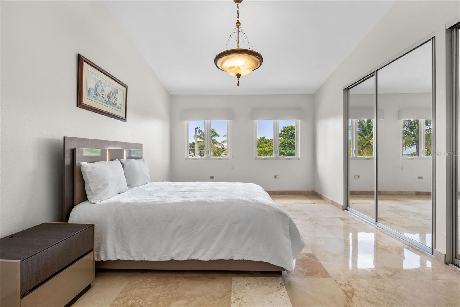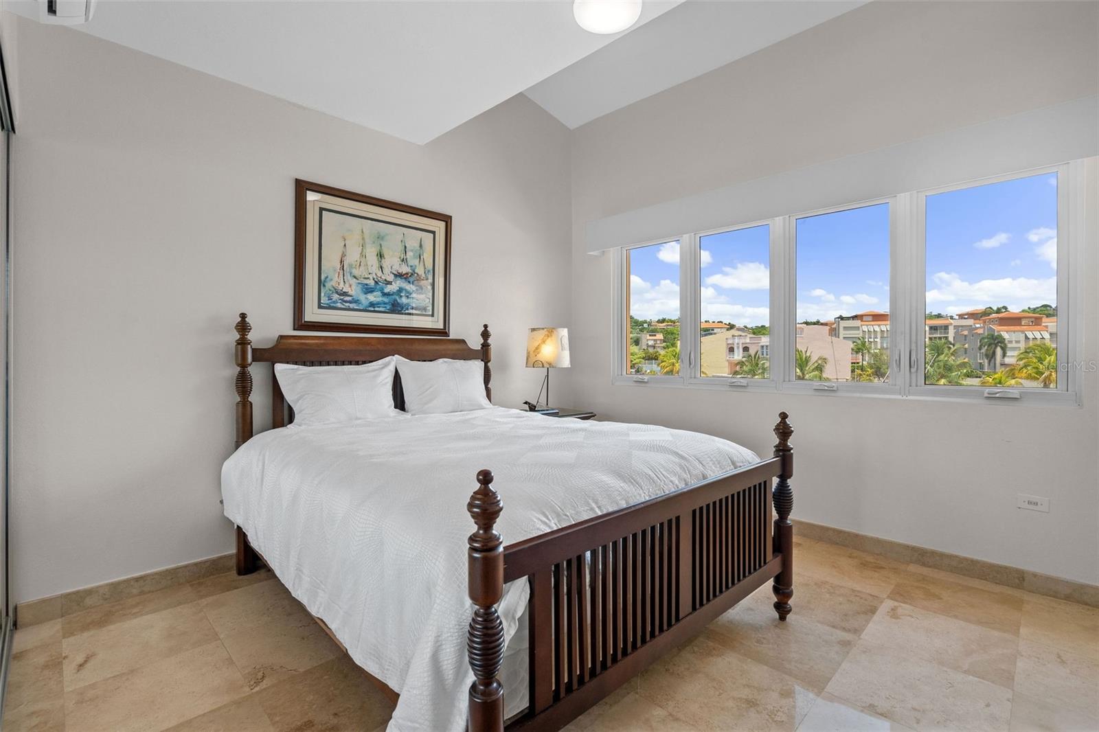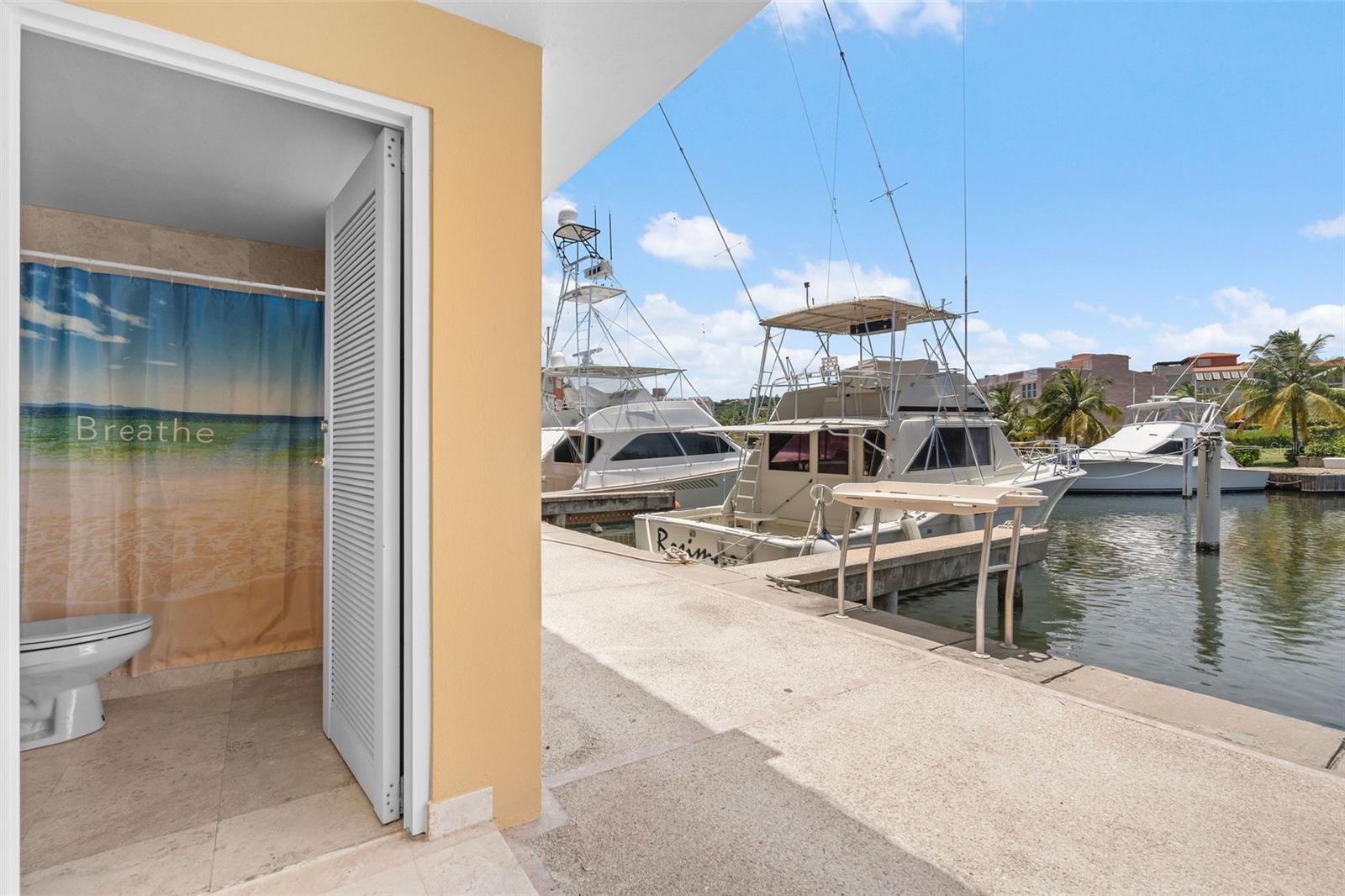 Designed with outdoor living in mind, the home includes a large entertainment area with its own full bath and a spectacular rooftop terrace offering panoramic marina views, ideal for gatherings or quiet evenings at home.