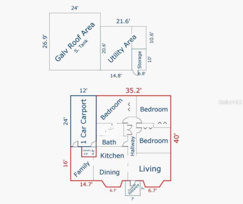 Functional Additions: Equipped with a carport, laundry area, and extra storage rooms.